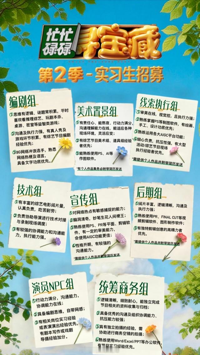 🥭忙忙碌碌寻宝藏第二季实习生招募正在筹备中,5月中录制制作团队:甘亿团队