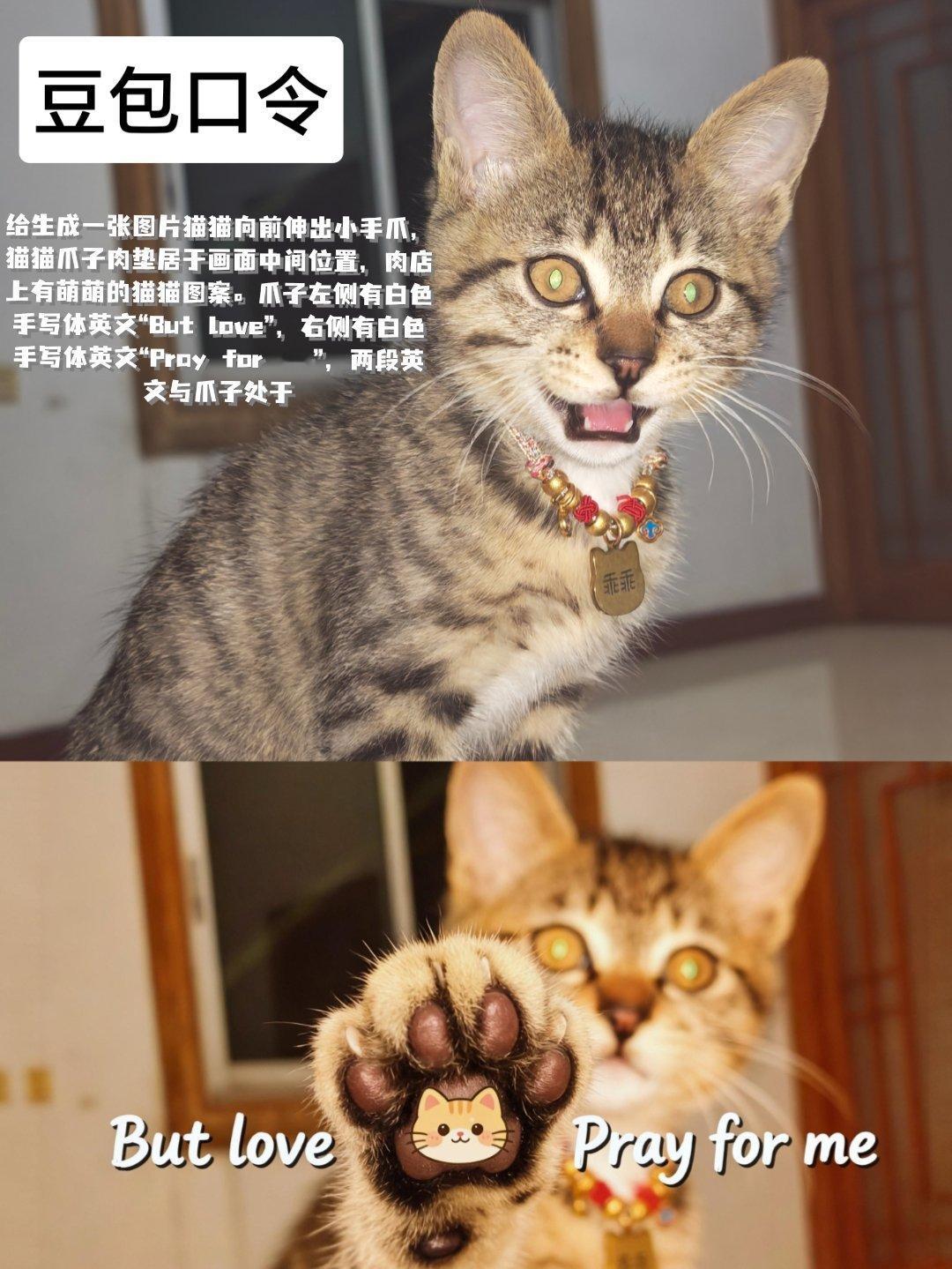 当我也想给小猫拍这个but love pray for me交给豆包就会得到 超萌合照