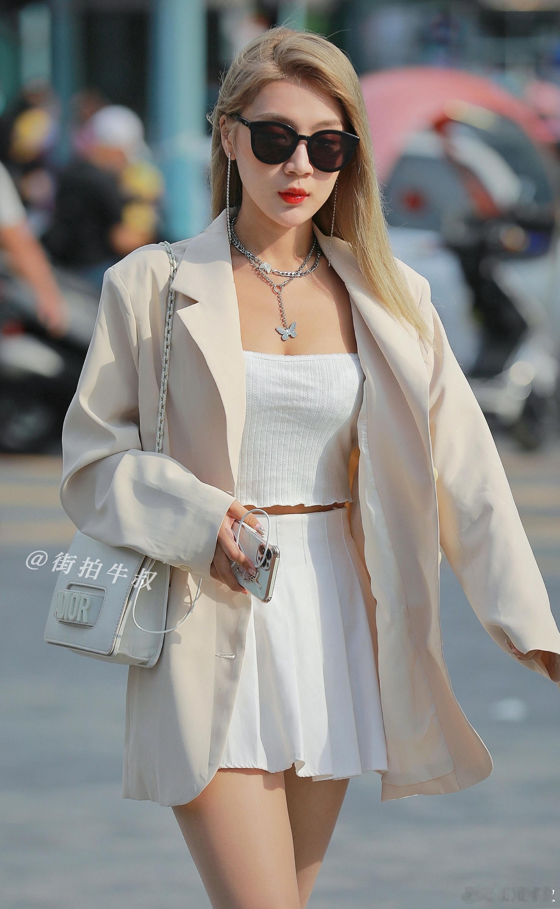 清新夏日穿搭,白色衬衫+米色短裙,优雅迷人!🌞👗👠
