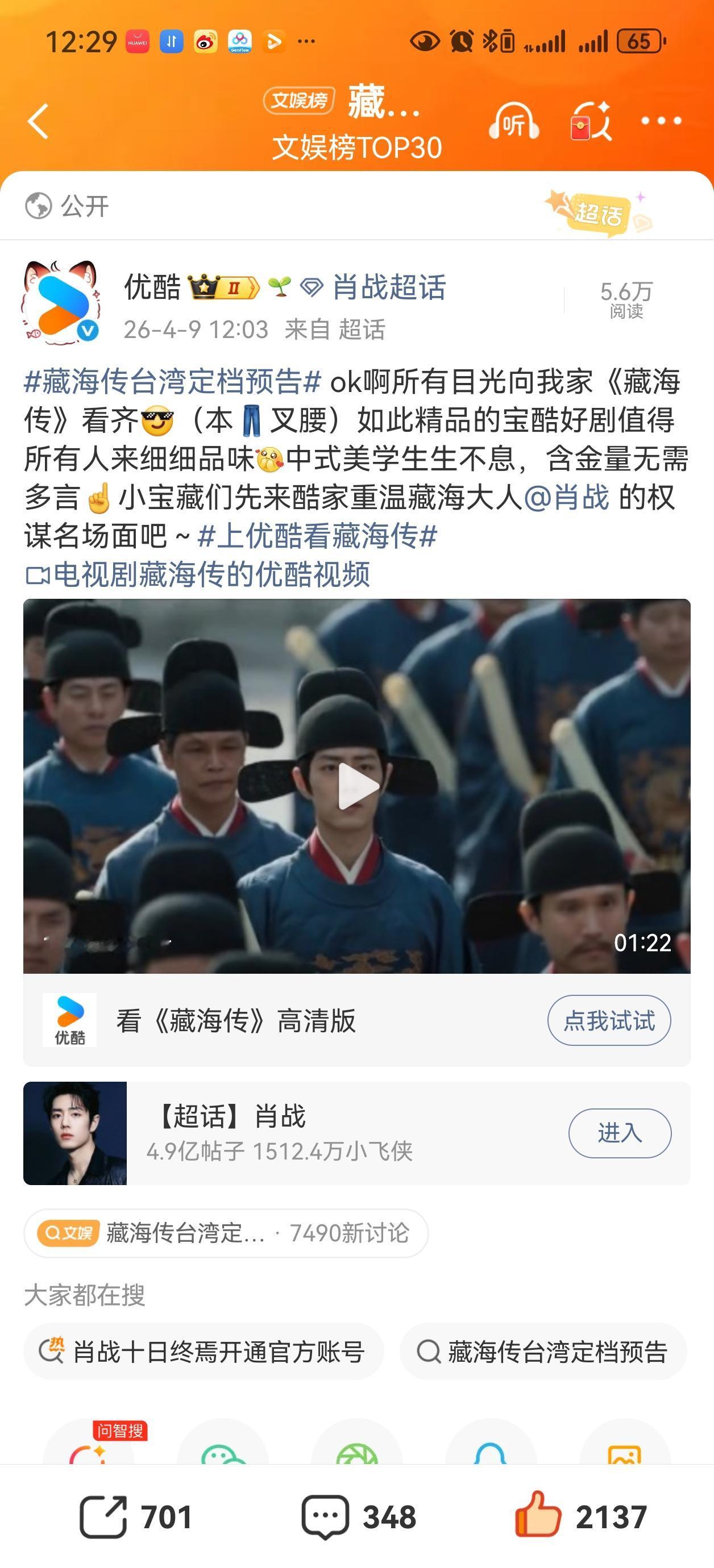 藏海传播完一年之后,又将在台湾上星播出啦[赞][赞][赞]