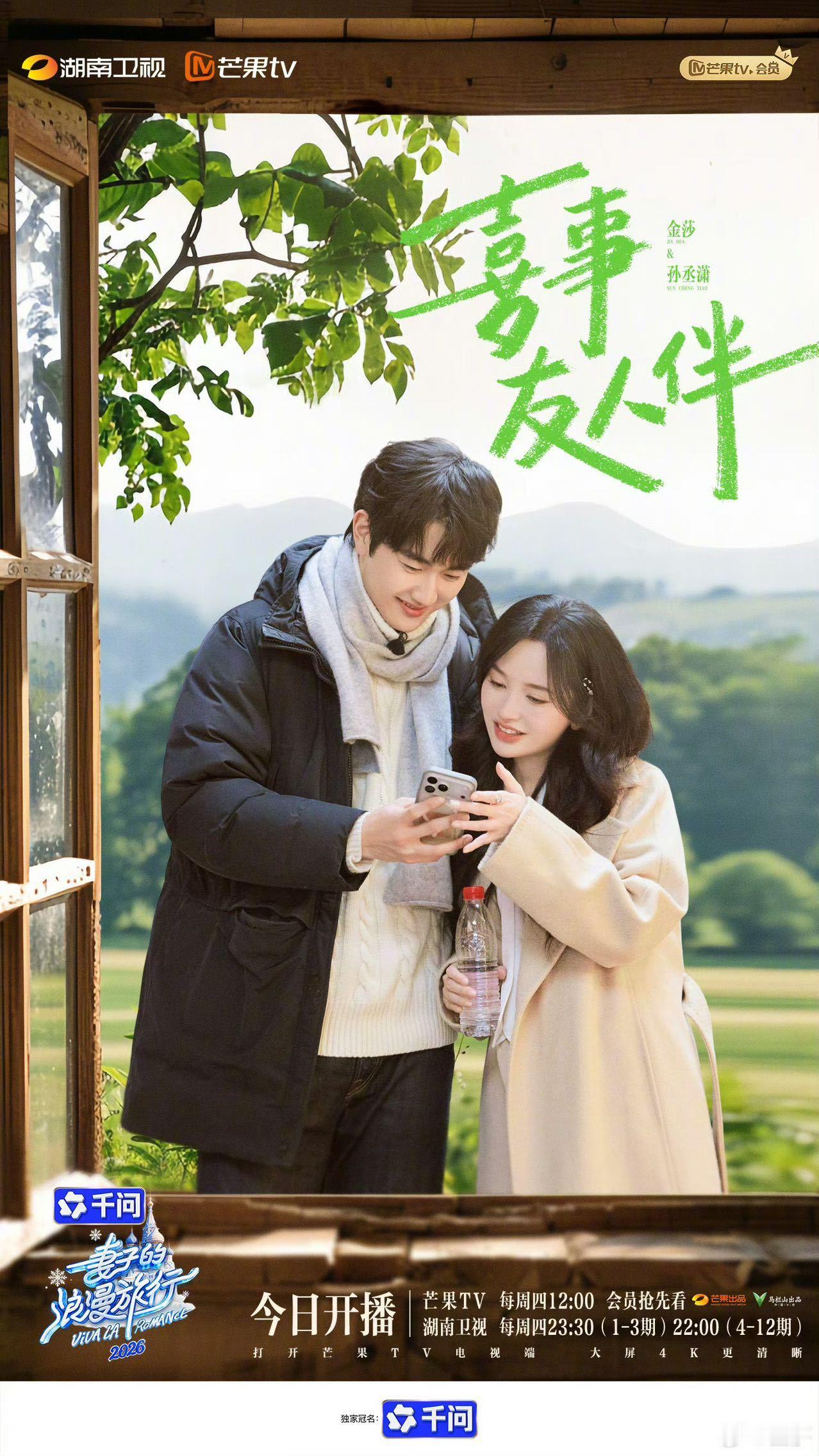 金莎夸孙丞潇是玉面老公金莎眼中的孙丞潇,既是温润如玉的古风小生,也是让人安心的玉面人夫,甜度拉满~两人也最新官宣啦,燥候 妻子的浪漫旅行2026开播妻子的浪漫旅行