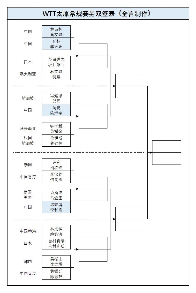 WTT太原常规挑战赛,国乒男双也有四对组合参赛。