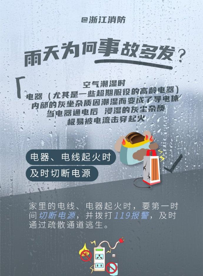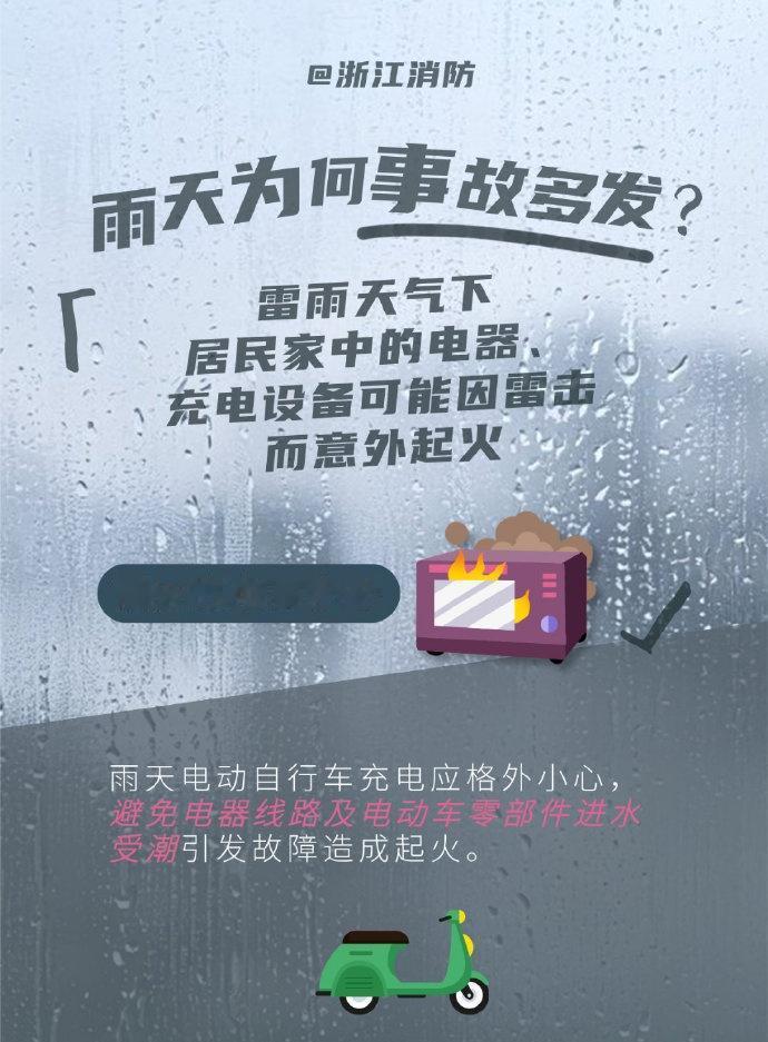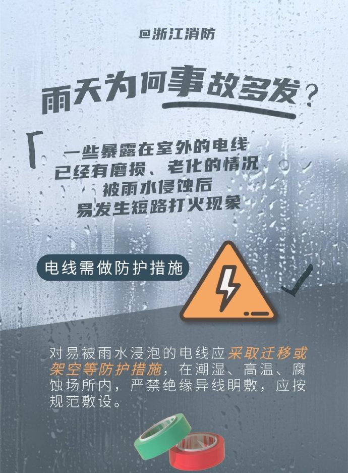 蓝浙浙的微课堂武汉暴雨【雨天为何事故多发?】近期雨水频发,潮湿环境、积水浸泡、用电不当极易引发电气火灾、燃气泄漏等安全事故,蓝朋友为您送上雨季消防安全专属提示,雨季火灾风险高,这些隐患要警惕!多地有10级雷暴大风