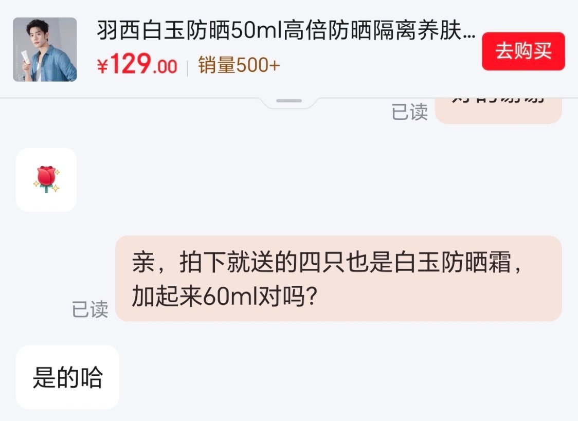 史低❗️拍下就有 50ml正装羽西白玉防晒霜+多送同款60ml,到手110ml,大于两只量 129亓:多送60ml肖战白玉防晒霜