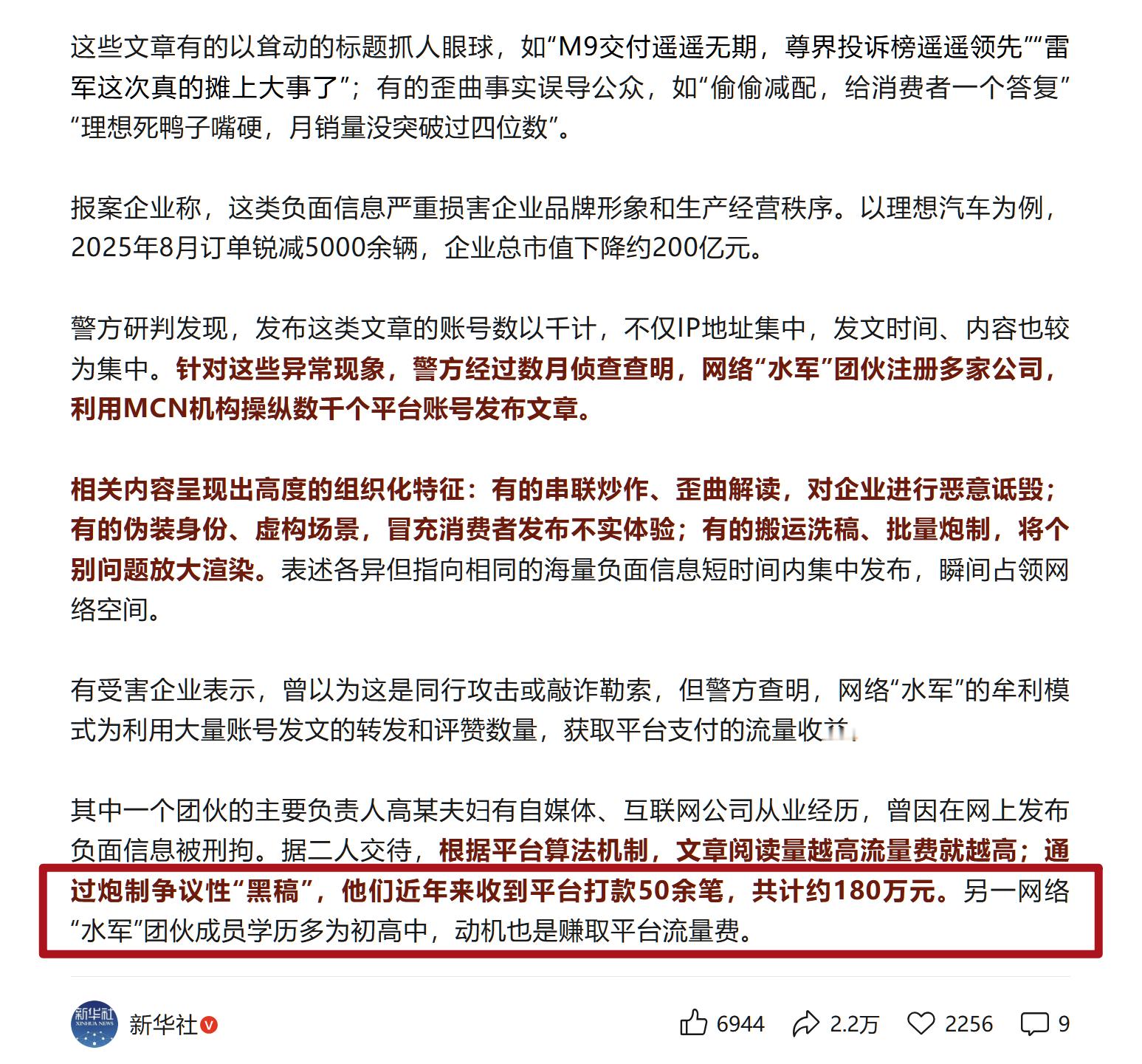 理想汽车回应遭AI造谣抹黑新华社曝光水军灰黑产业链霸天资讯