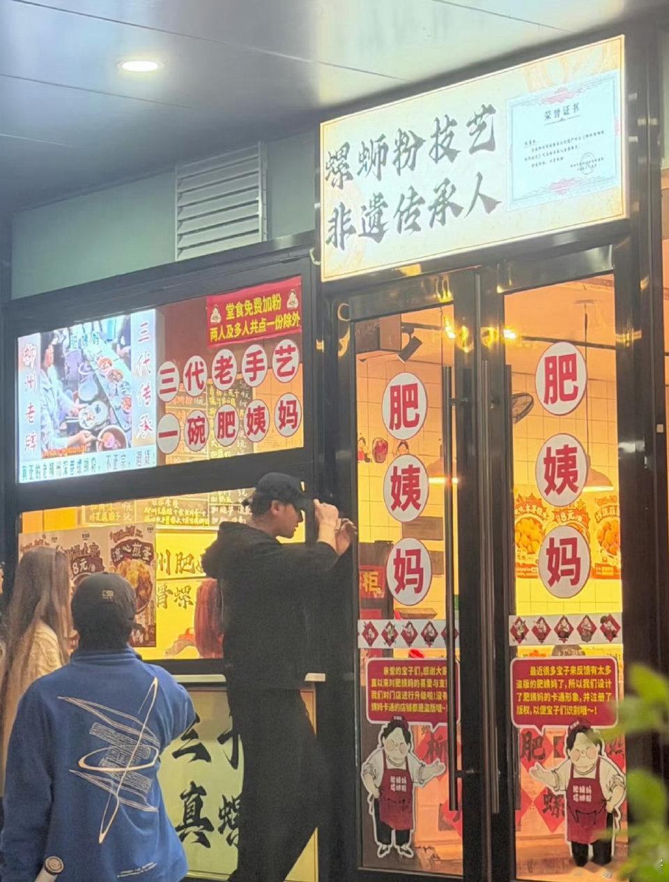 偶遇黄子韬徐艺洋吃螺蛳粉黄子韬徐艺洋杭州打卡超火肥姨妈螺蛳粉,墙上炸蛋海报一眼认