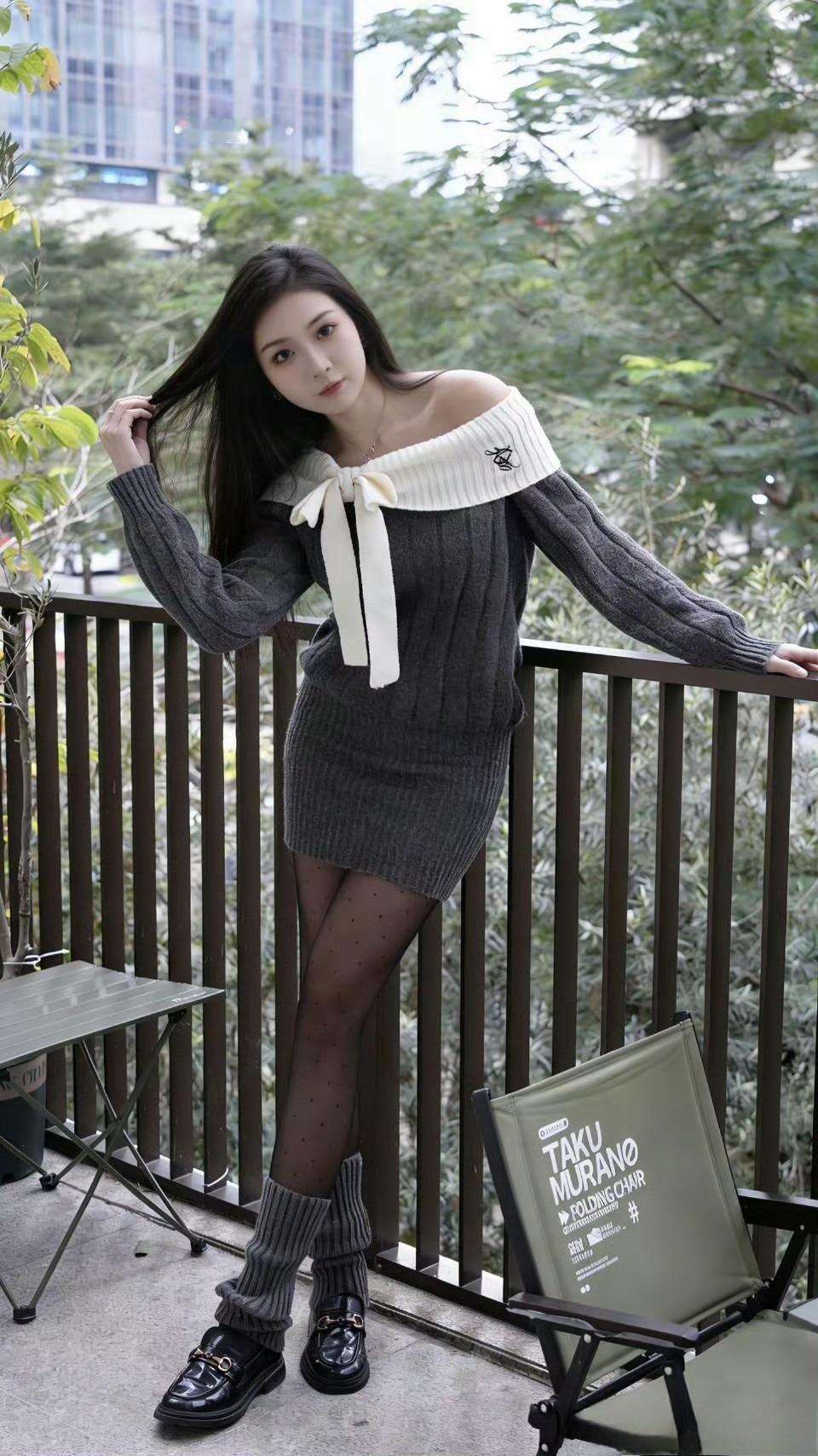 这种“学院风针织裙+混搭袜鞋”的组合,既保留了少女感,又不会显得太幼稚,很适合日常出街或休闲聚会。学院风裙子穿搭 学院风女生穿搭 灰色针织裙