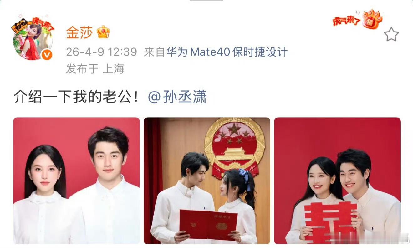 金莎孙丞潇领证咯,在今年的2月13日~在之前《爱的修学旅行》中,他俩表示已进行婚