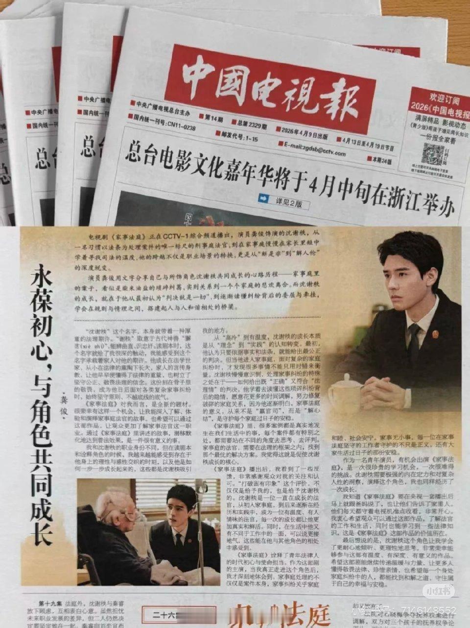 今天《中国电视报》单独报道了龚俊!家事法庭在央视总台播出,今天登中国电视报文章还