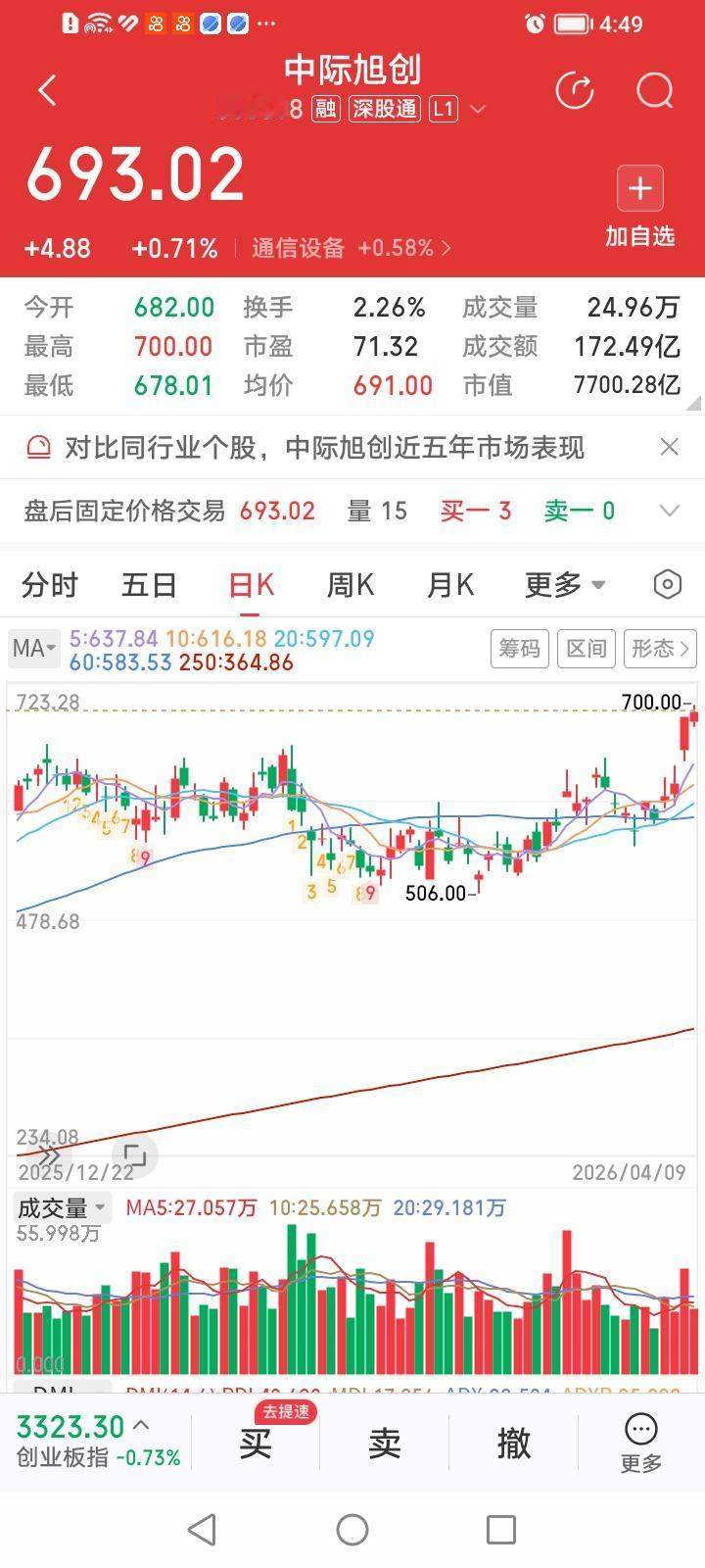 老易中天概念中的天孚通信涨幅最高,也才上涨2.94%,新易盛居然下跌2.29%,中际旭创微涨0.71%。