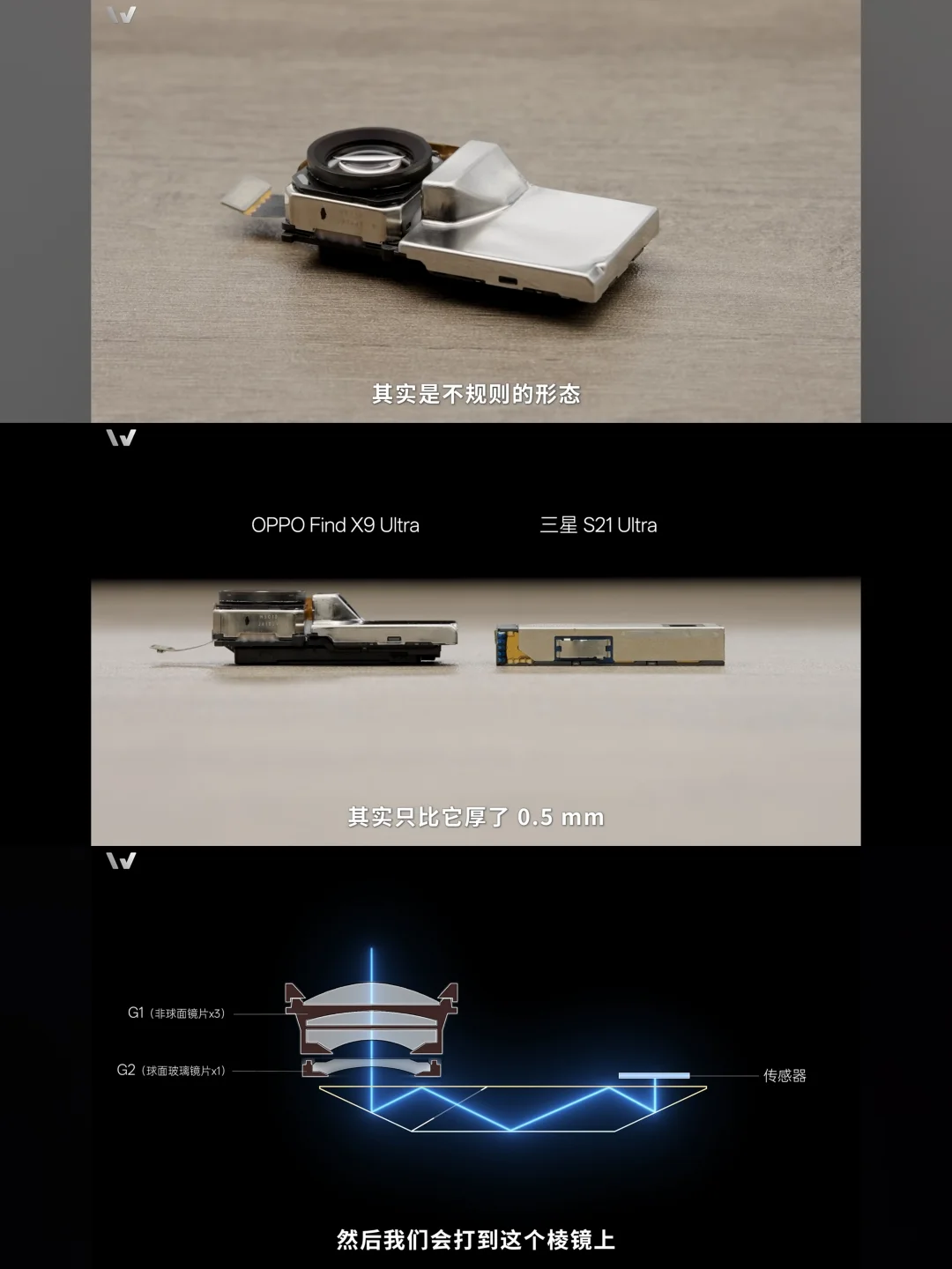 看来OPPO已经按耐不住了,Find X9 Ultra的内部结构已经曝光了,五颗摄像头都很猛,特别是那颗10倍光学变焦镜头,特殊的结构,做得非常薄,