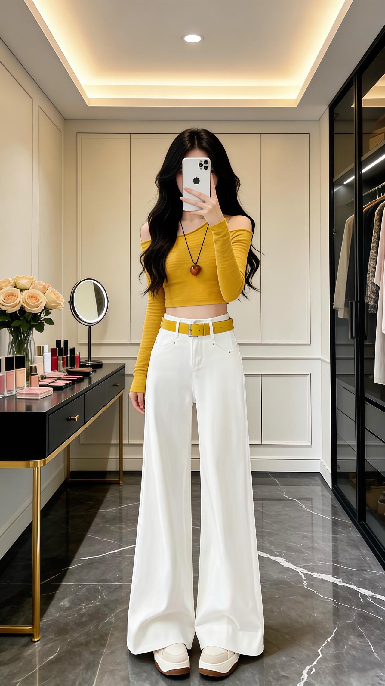 显瘦遮肉裤子 高腰阔腿裤 显高显瘦显腿长