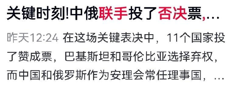 关键时刻,中国与俄罗斯联手,一票否决!直接砸碎了美国精心编织的围堵大网。