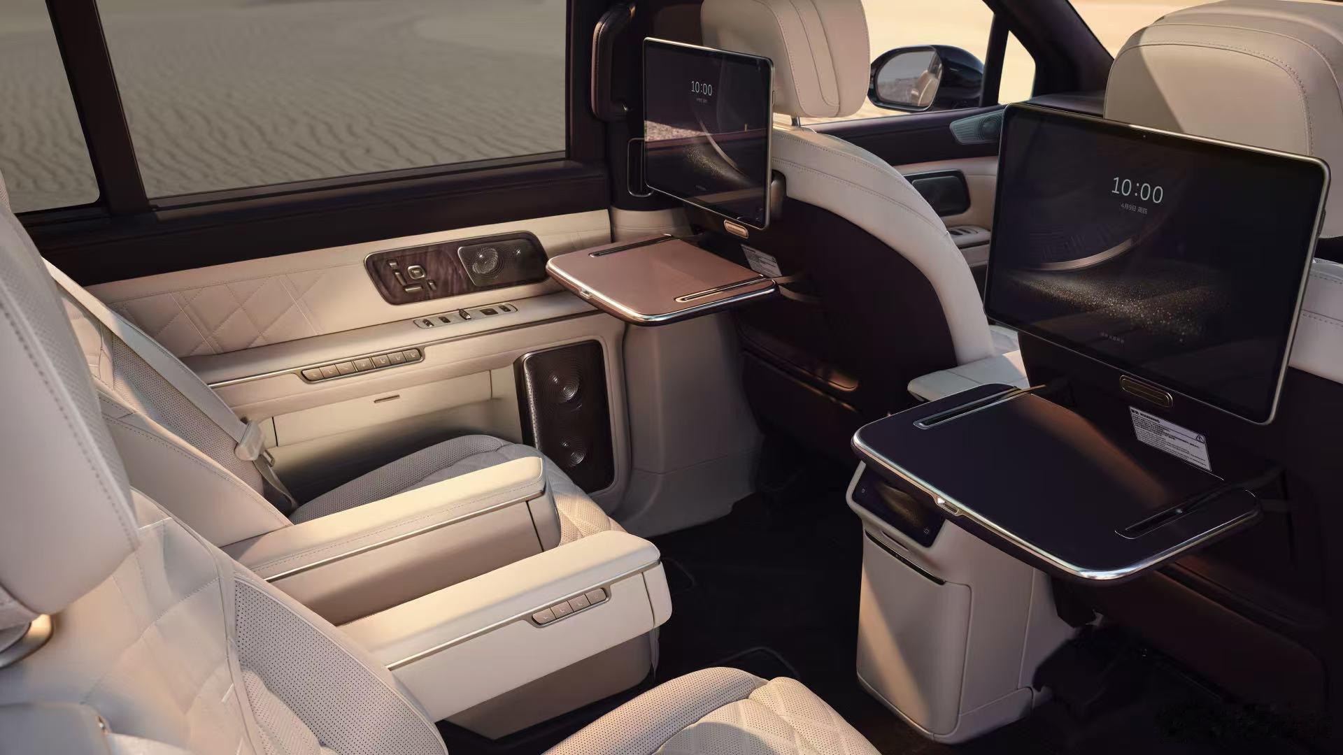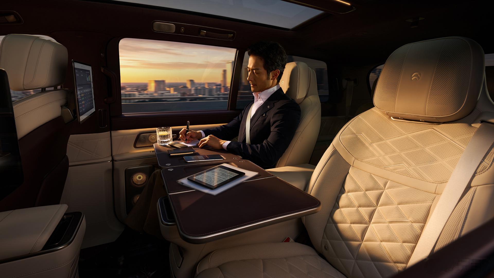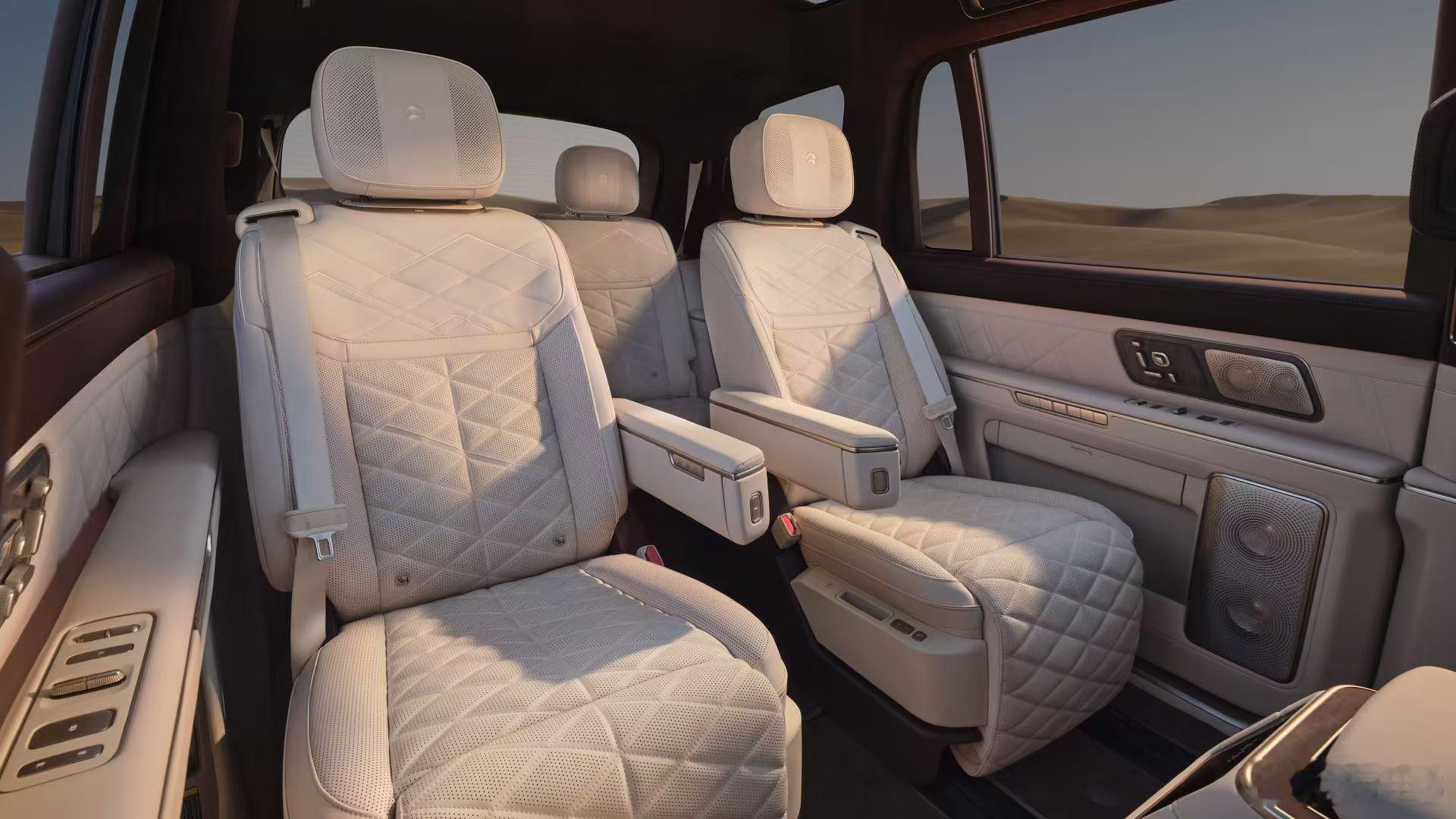 蔚来es9正式发布 6座版ES9第二排分有中央通道的和带中岛的两个版本,后者从这波官图的展示来看,可扩展性还是侧重于商务取向。如果第三排使用频率不高,带中岛这个版本可能更实用一点,临时放点什么都方便 蔚来ES9