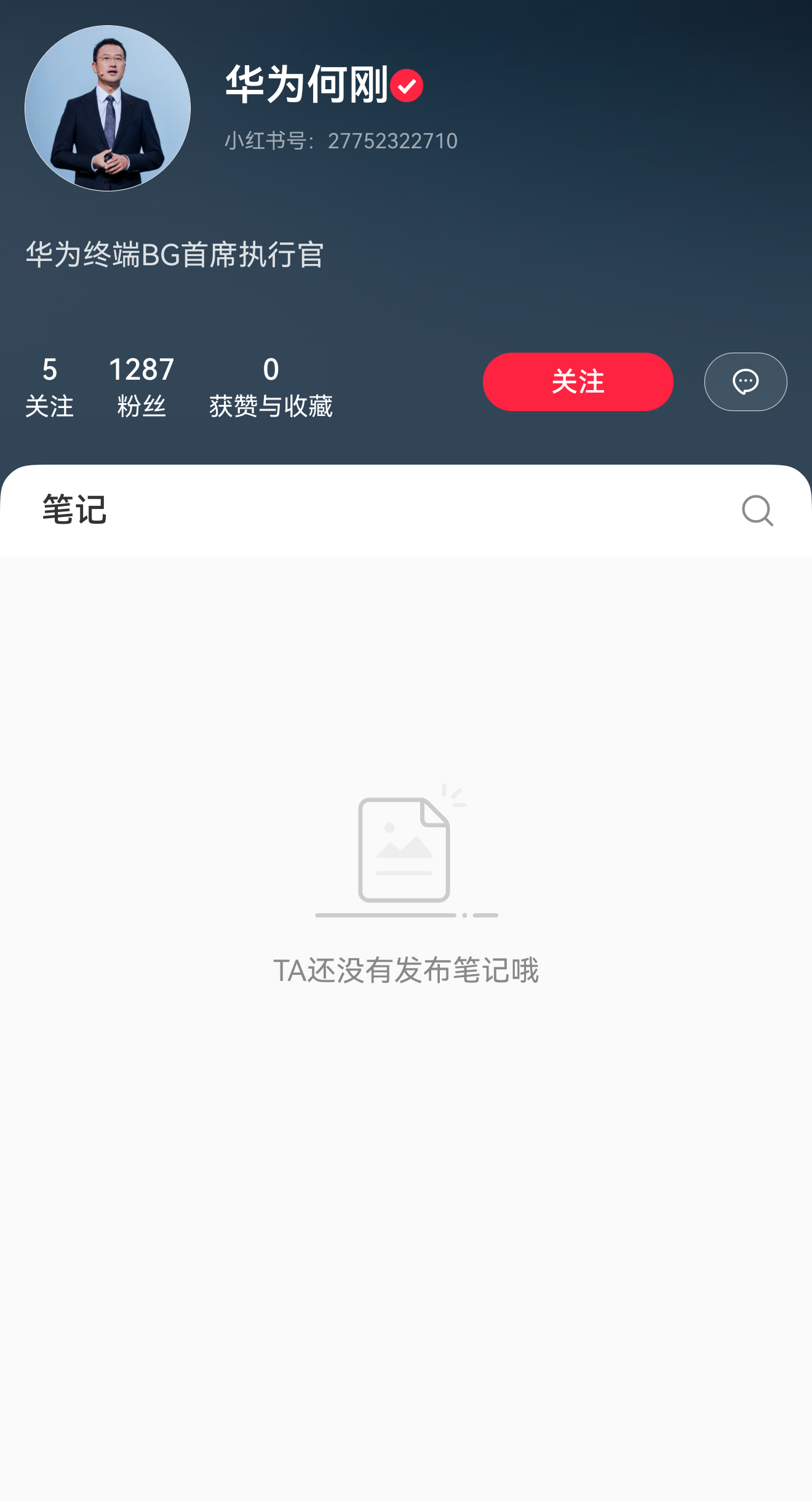 刚发现余承东和何刚在小红书开了账号并进行了身份认证,看来华为要对女性用户发力了