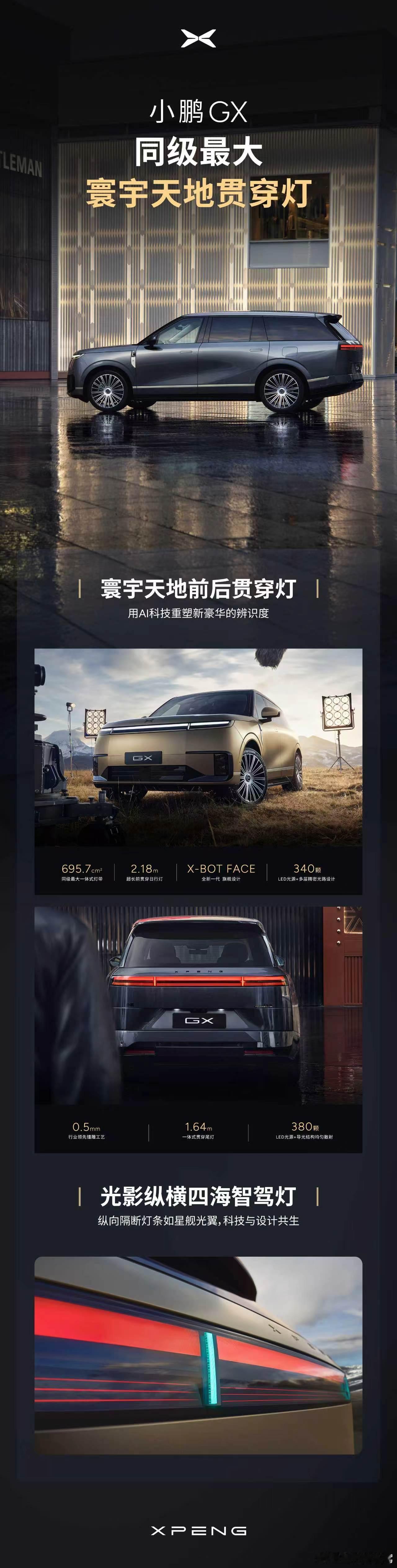 贯穿灯还是喜欢小鹏这种,就是期待到时候灯语是什么样子的。这个前脸和后脸比我想象中的好看很多!!小鹏GX首发同级面积最大一体式灯带新科技旗舰小鹏GX来了小鹏汽车小鹏gx