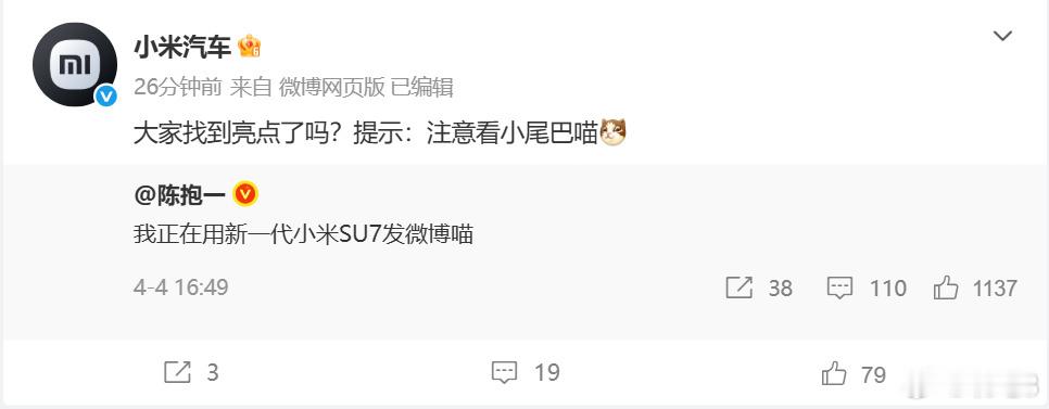 小米SU7能发微博了 特殊的小尾巴有点新鲜度,不过比起用车发,还是手机发微博稍微更方便/顺手一点吧……