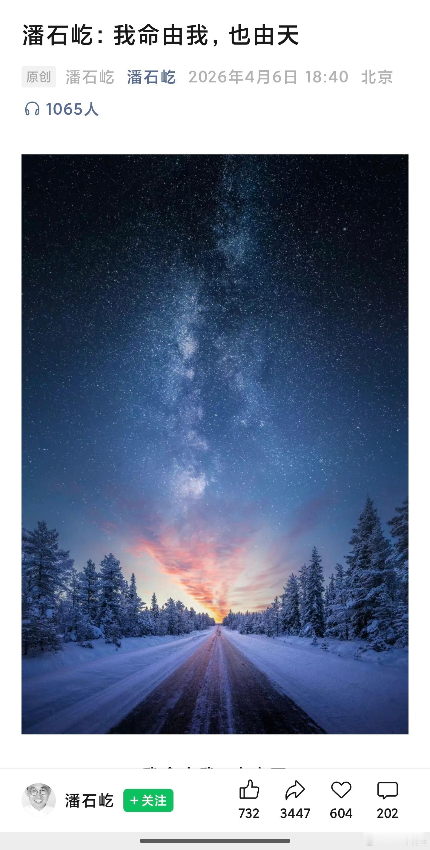 潘石屹清明在祖坟前祭拜,并更新了三年未动的微公众号,发布了一张夜空星空的照片,配文“我命由我,也由天”,似乎蕴含深意。