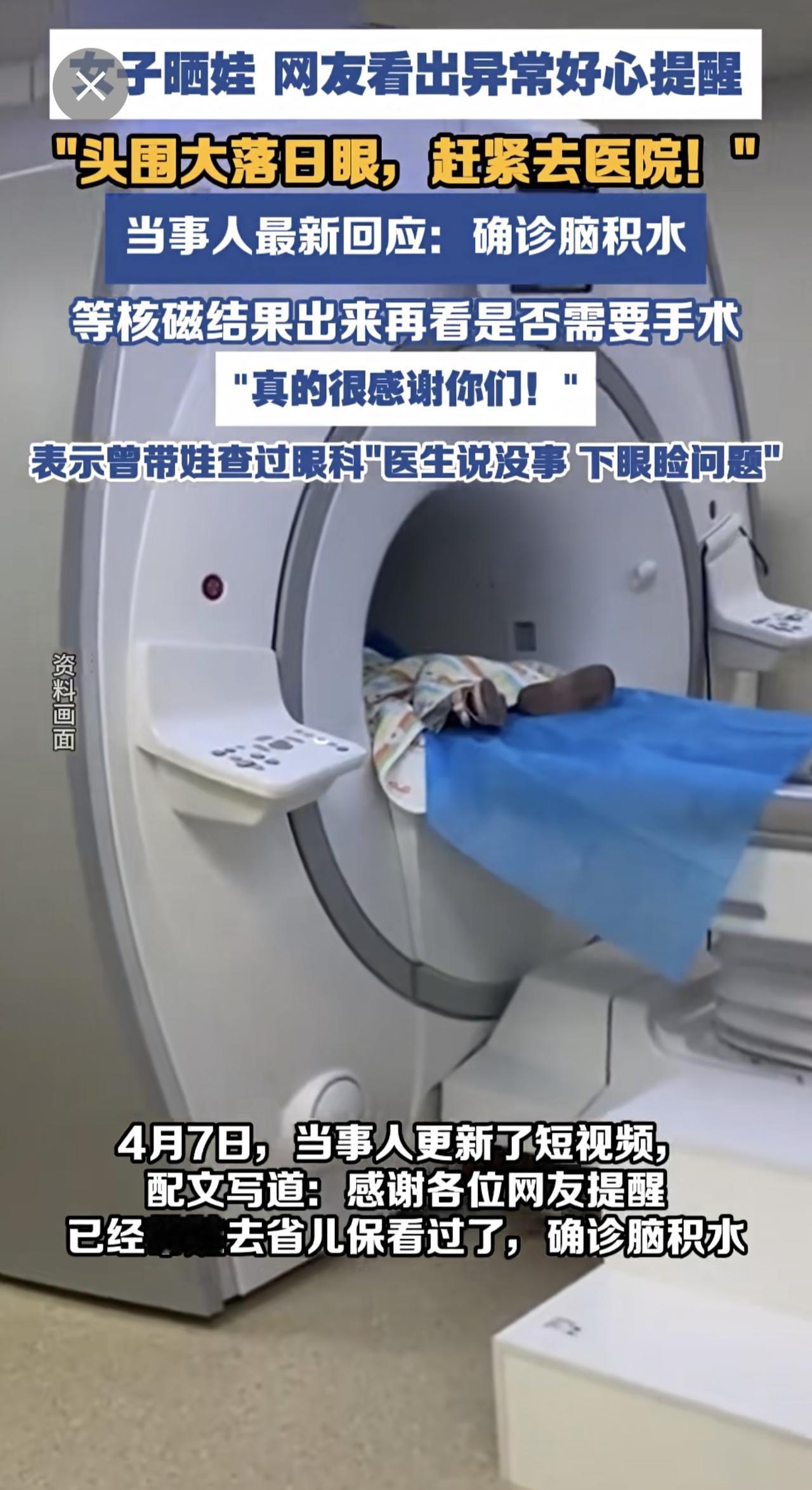 女子晒娃,网友看出异常好心提醒。当事人最新回应:确诊脑积水,等核磁结果出来再看是否需要手术。
