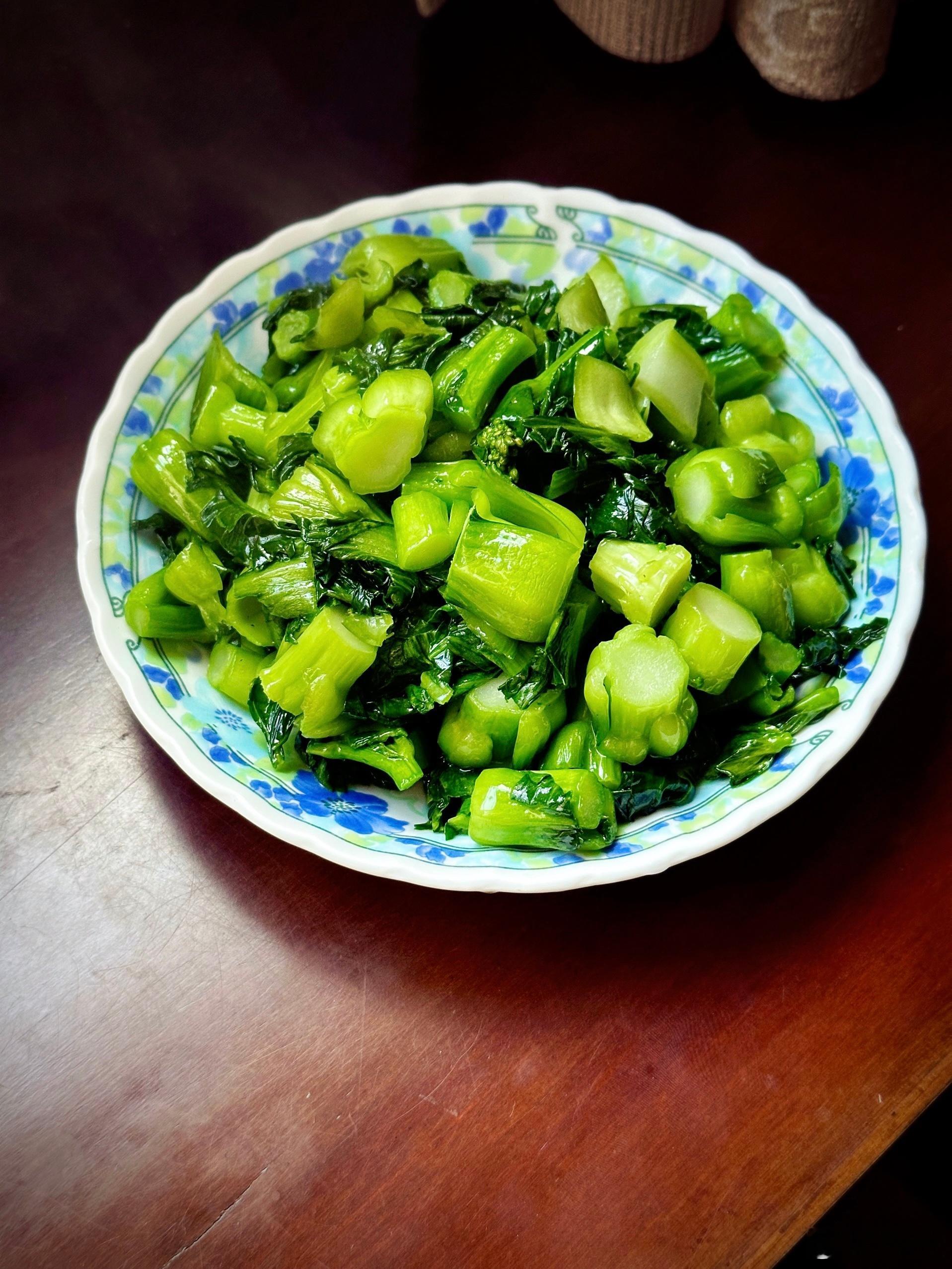 芹菜拌卤鹅肉顶便当,鹅肉撕开卤汁里浸一下,拌芹菜就不需要别的调味,配的蒜辣醋浇上去特别对味。今朝豆苗瘦唻,换了很嫩的枸杞芽,鸡汤里又加了两只蟹粉鱼圆。菜秸快要落市,嚒嚒大一盆炒出来。以前宁波阿娘把很大的饭碗叫做“呒良心”大碗。我小阿哥吃馄饨就专挑呒良心大碗去装。今天的炒菜秸,也算。饭后散步。行至淮海中路复兴路。下起雨来。半间灶披间菜单