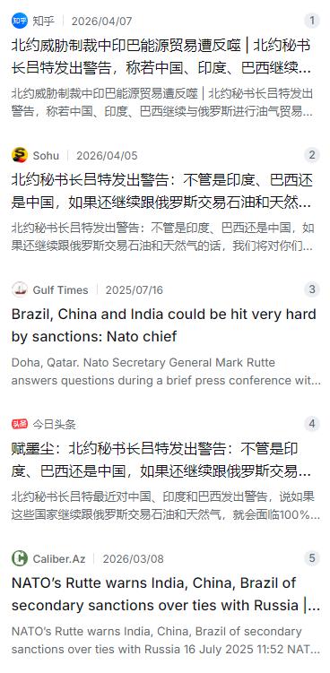 北约秘书长吕特发出警告:不管是印度、巴西还是中国,如果还继续跟俄罗斯交易石油和天然气的话,我们将对你们采取100%的次级税制裁。