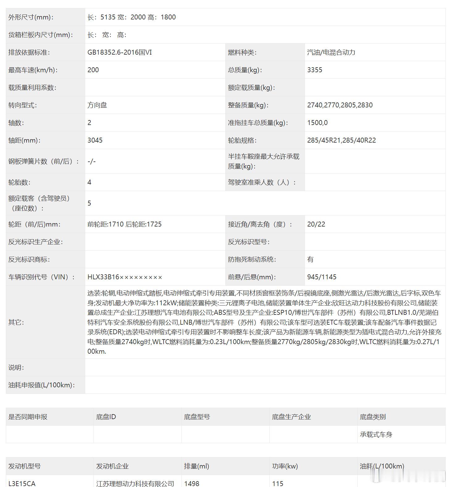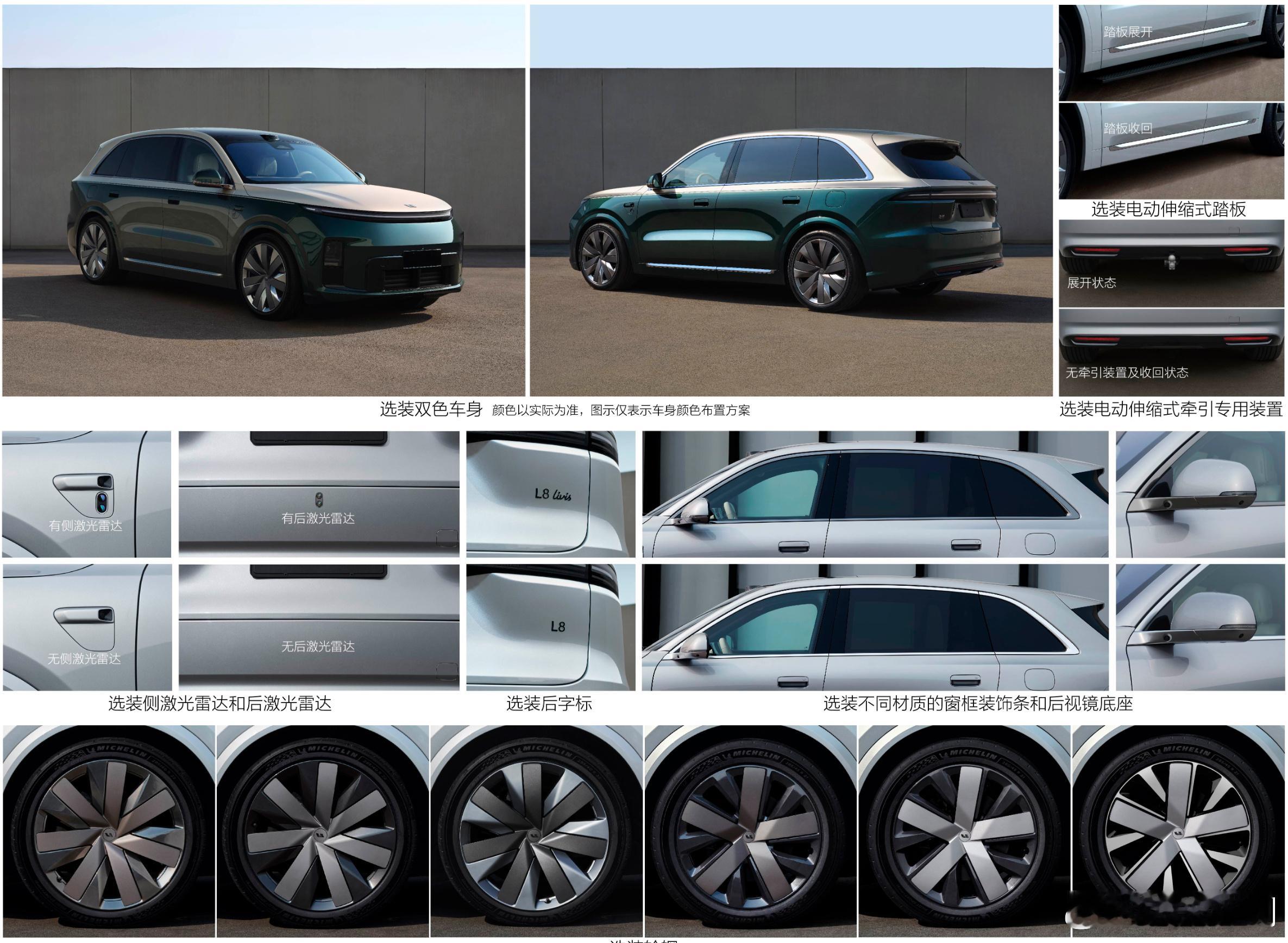 理想L8 Lives入网工信部,和之前的L9官方图一样,也有双拼色设计,5135mm x 2000mm x 1800mm,轴距3045mm,整备质量2.74-2.83吨。和老款相比,看起来更有力量感。