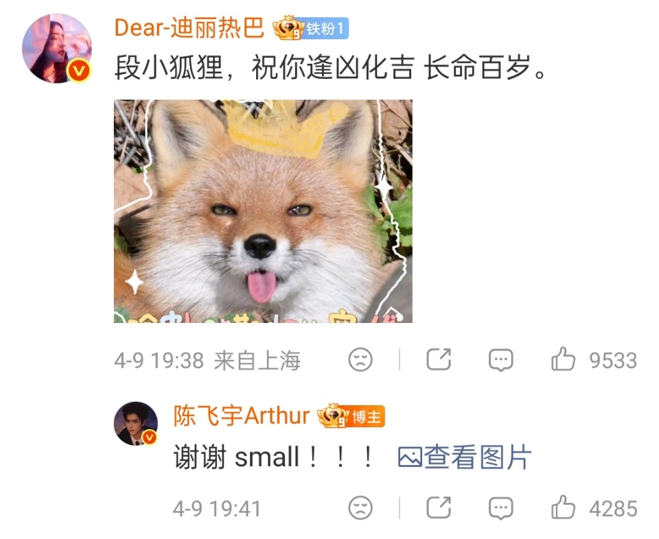 迪丽热巴段小狐狸长命百岁迪丽热巴给陈飞宇的生日祝福 迪丽热巴 祝段小狐狸长命百岁 !!