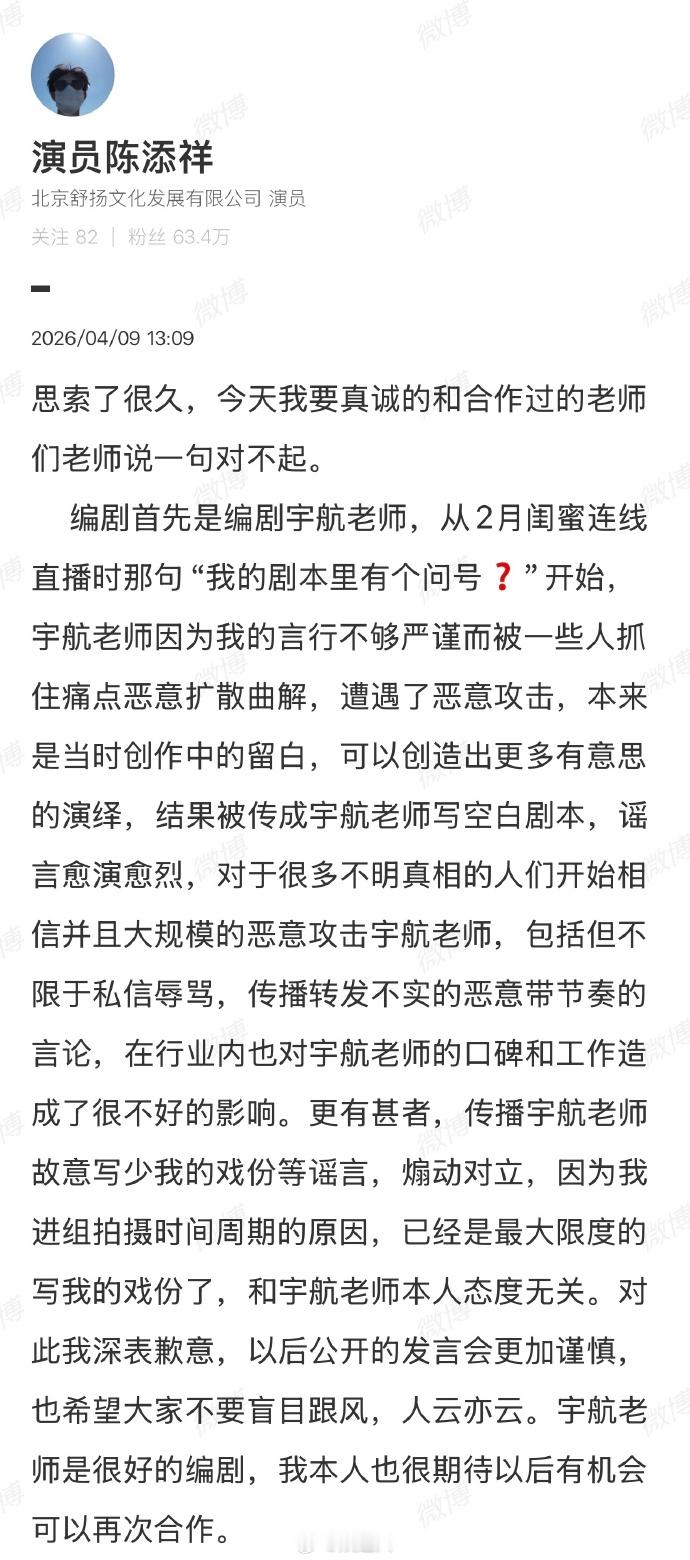 陈添祥有很好的引导粉丝 发长文回应最近的一些讨论,内容不制造对立、不煽动受害叙事