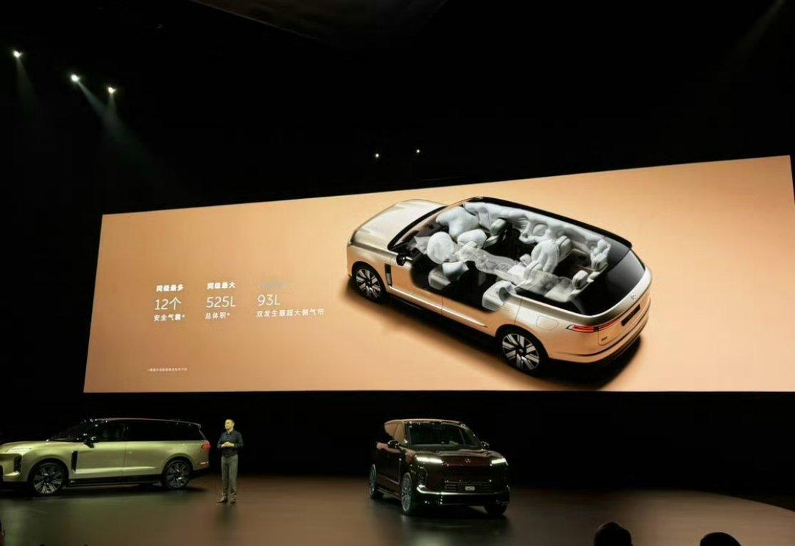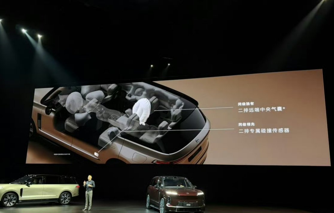 蔚来ES9 上标配 12 个安全气囊,有二排的远端安全气囊