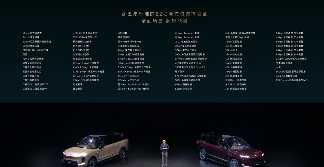 蔚来 ES9 采用超级堡垒笼式安全车身,标配 12 个安全气囊,同级最多,还配备了行业安全功能最多的零重力座椅。