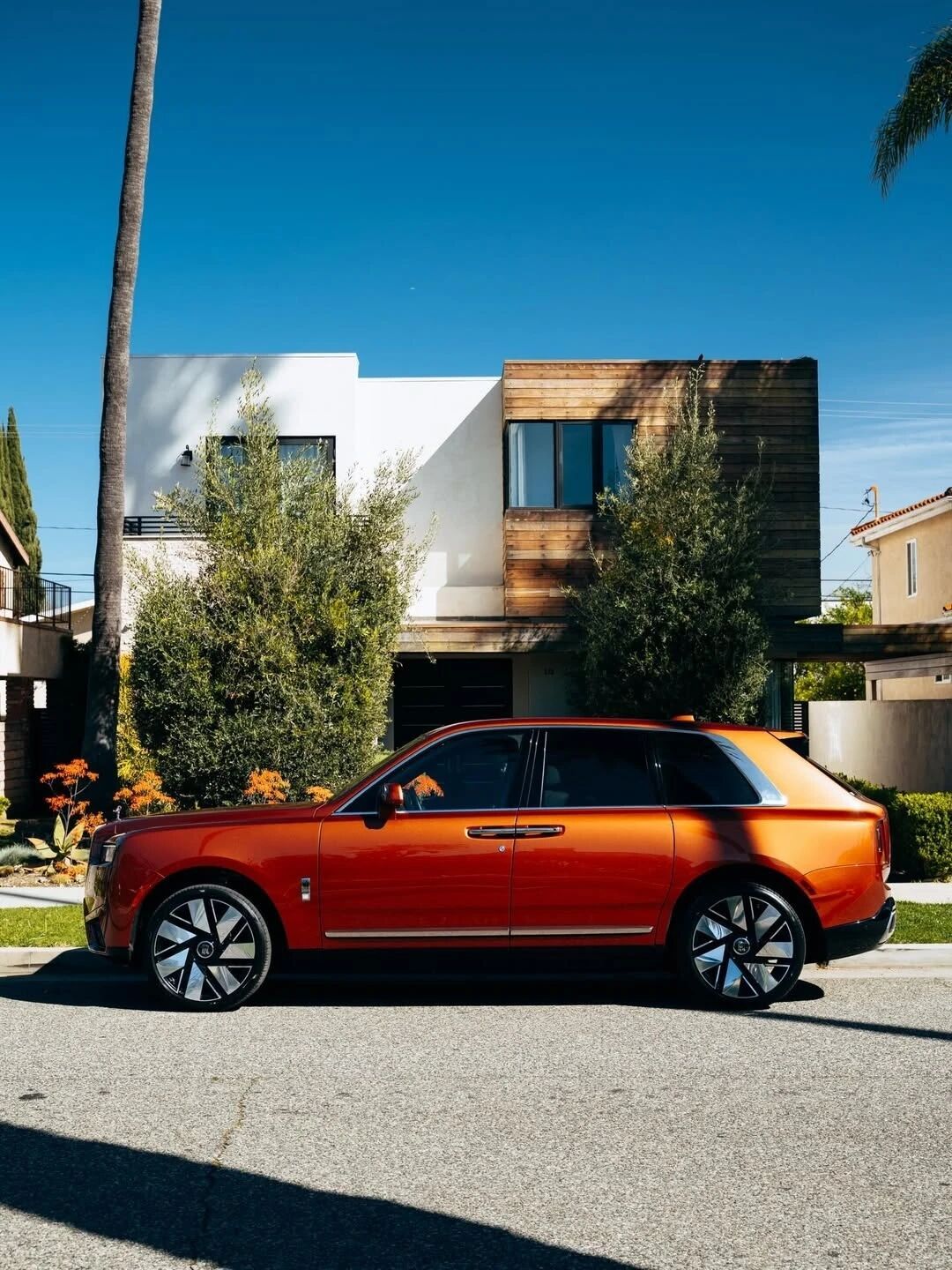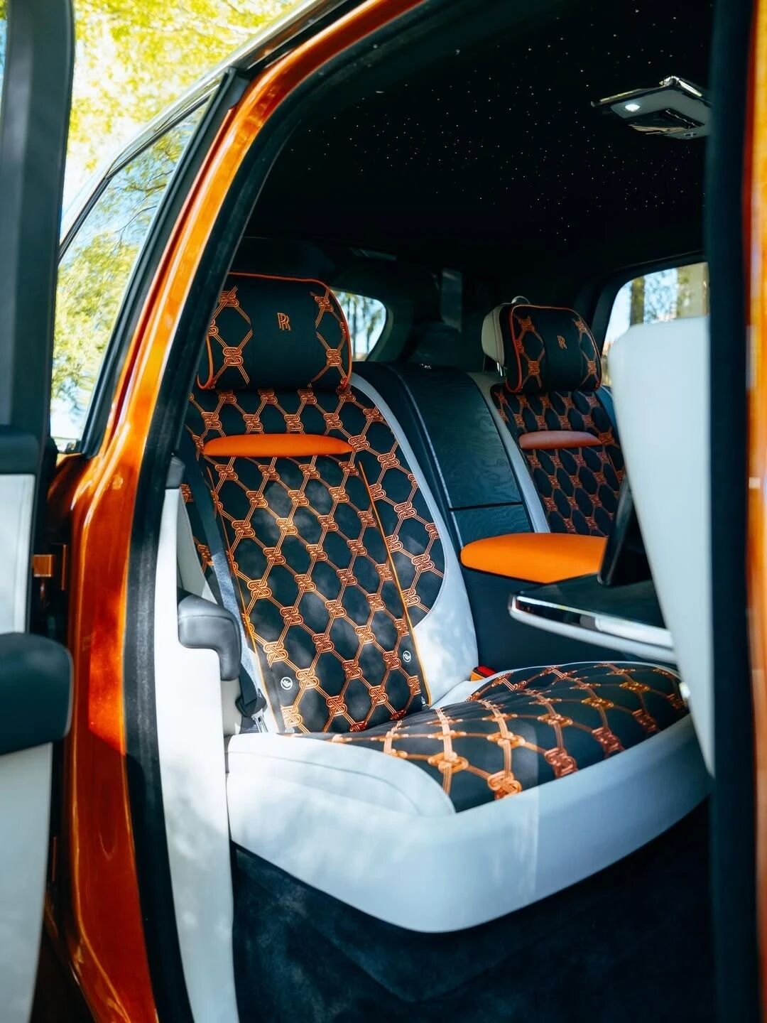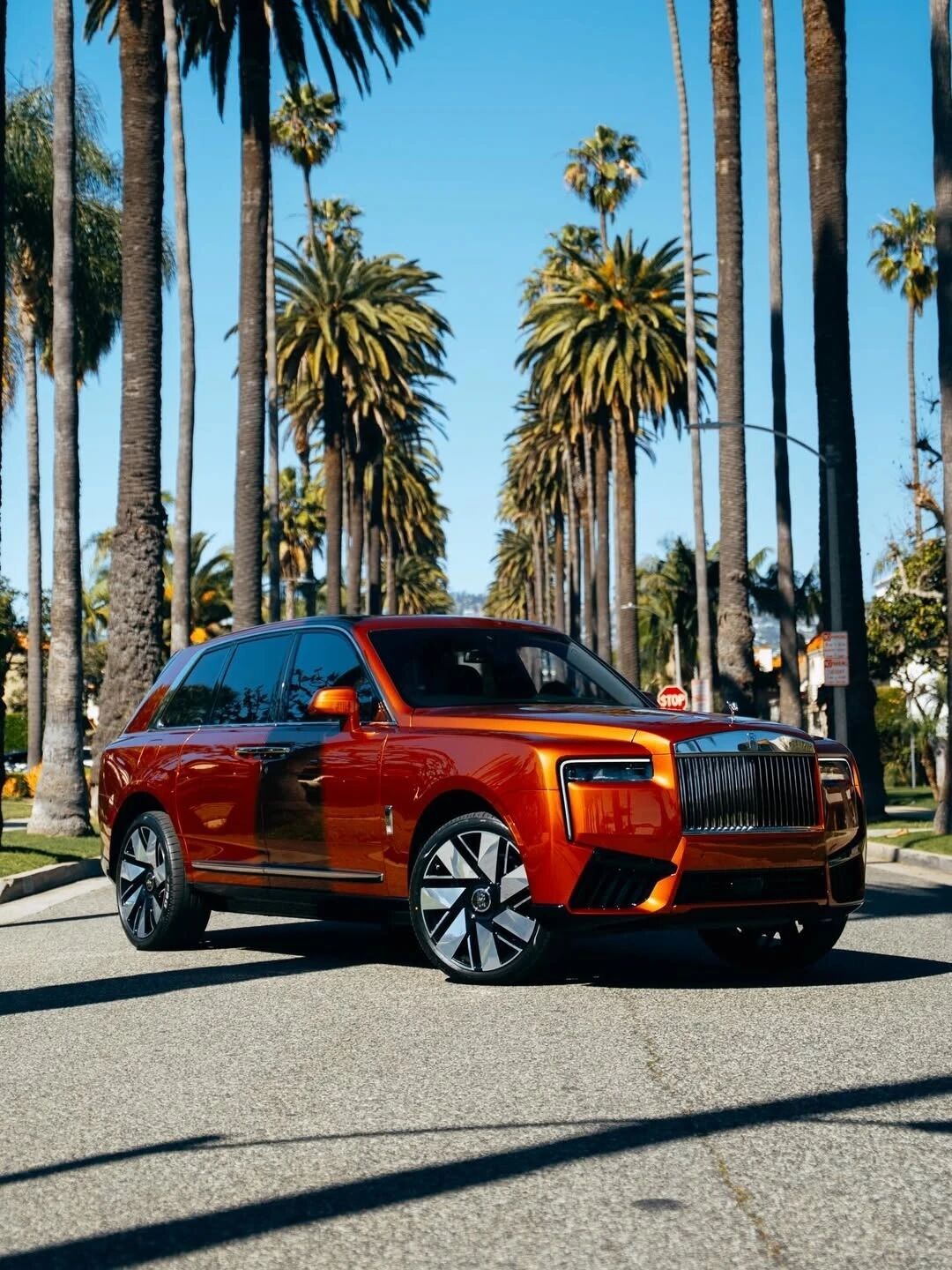 劳斯莱斯库里南BB版,外观颜色是Desert Dawn,内饰是Senset Orange汽车豪车超跑