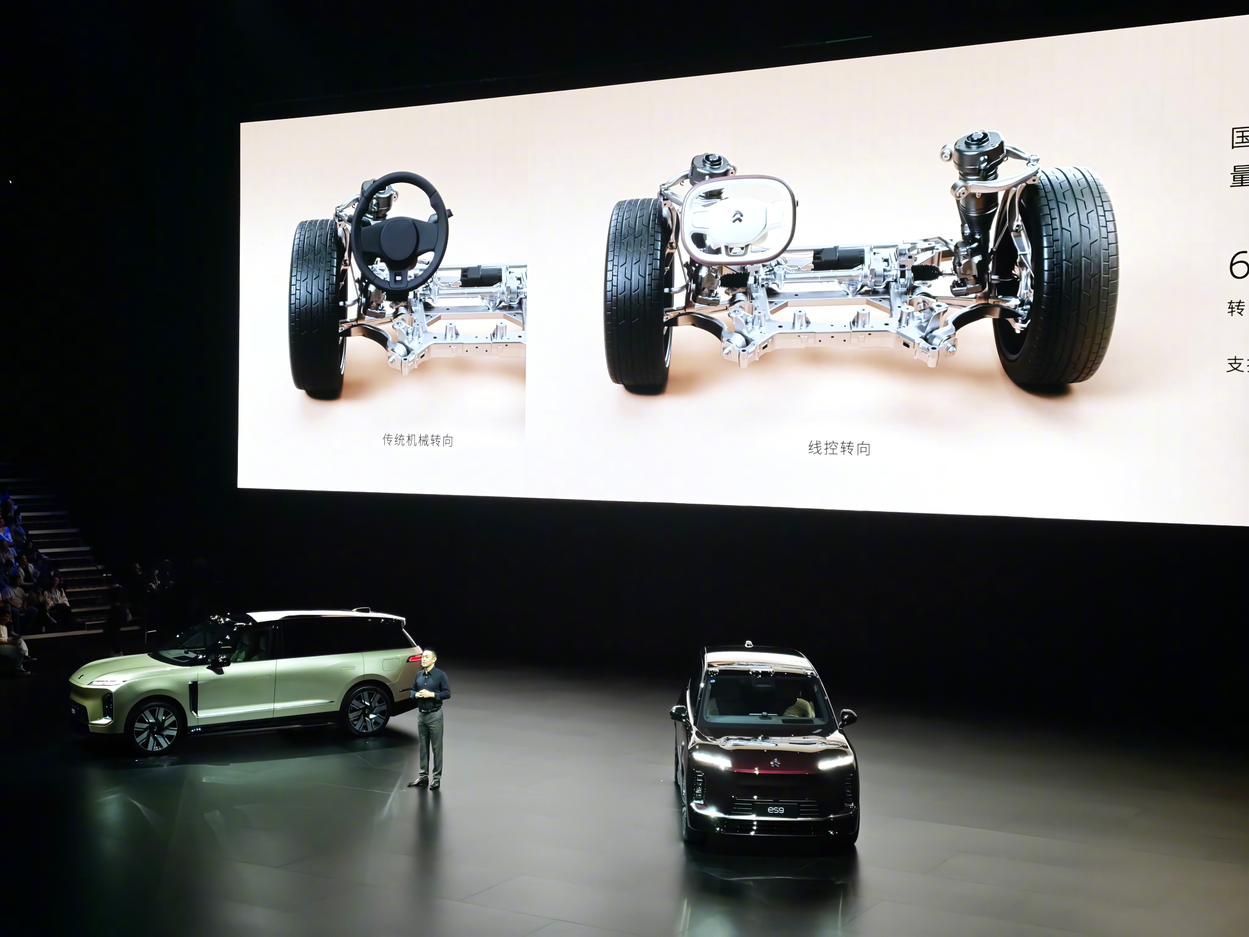蔚来ES9百公里加速4.3s 102 度电池,续航620KM,配后轮转向,百公里电耗17.4kWh