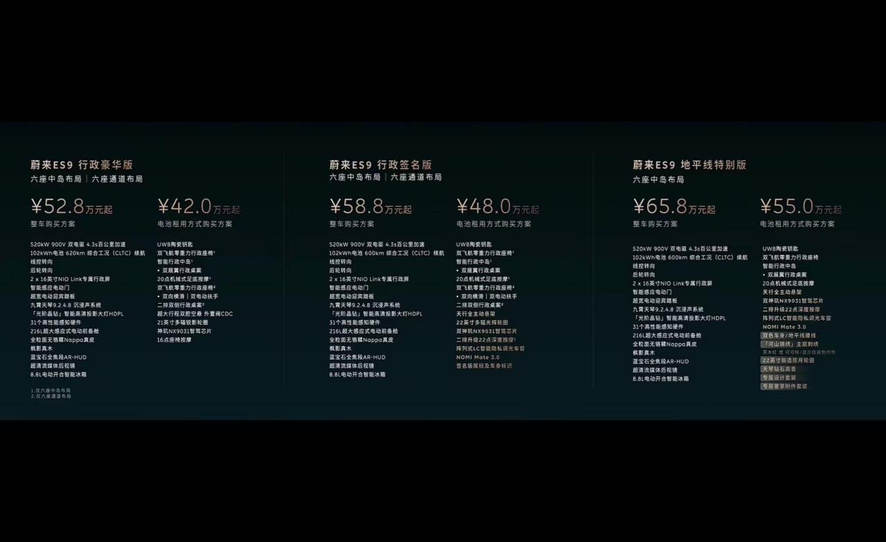 蔚来ES9全家桶齐料 预售价52.8万起步,租用电池价来到42万!!! 标配10