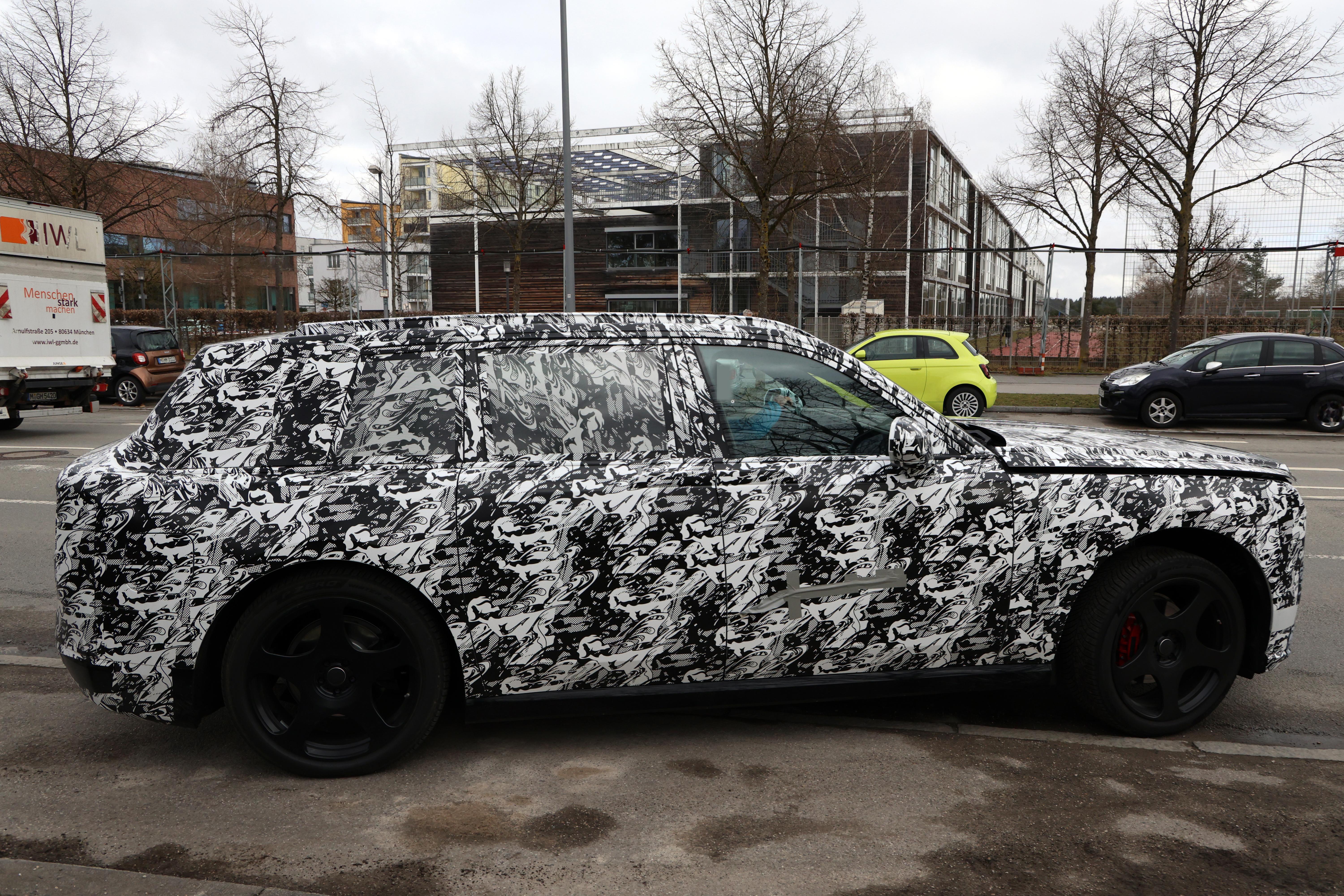 劳斯莱斯纯电动SUV,可能会另外起个名字。它出现在慕尼黑。它肯定会采用宝马最新的电动架构,大圆柱电芯,估计是46120规格。2024年申请的专利左右分开式前盖,里面预计会有一些精巧的储物箱设计。2027年投产,售价估计在40万~45万欧元。