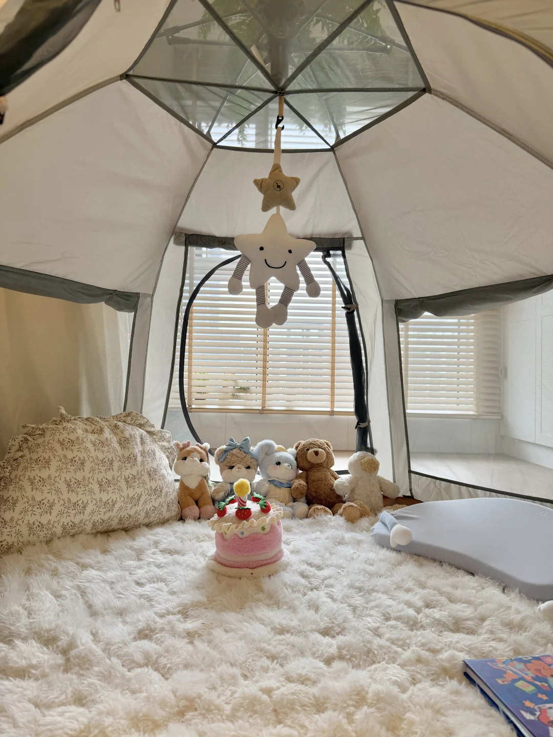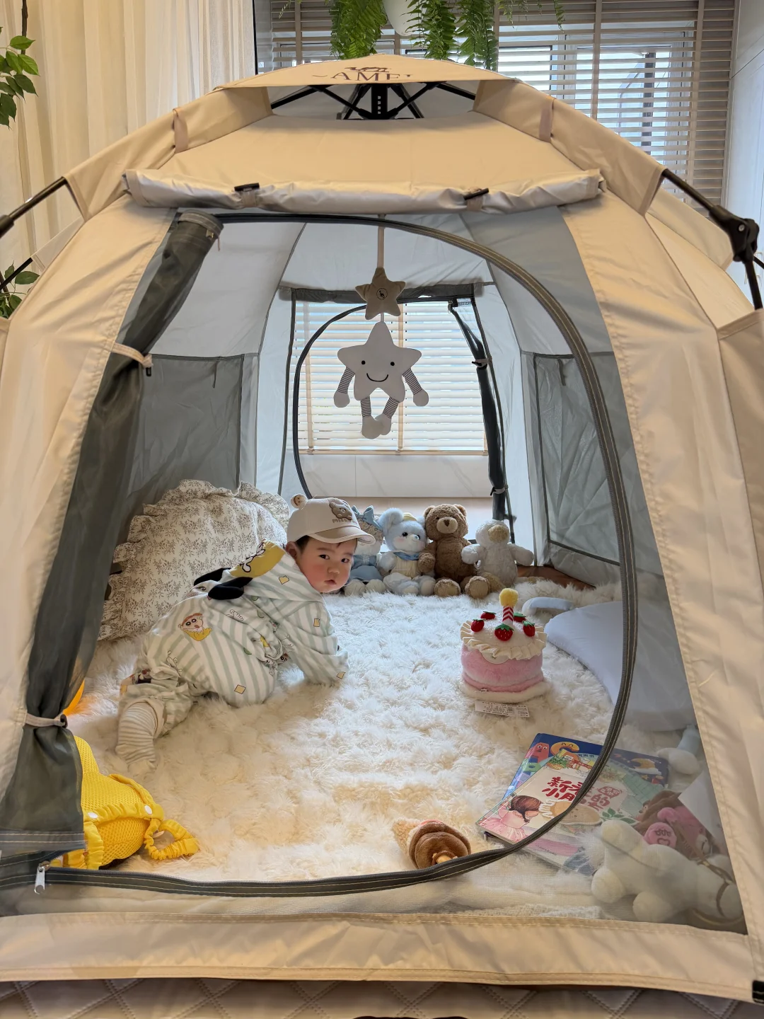在刷到说在家给崽崽搭个帐篷能乖乖待住,想着试试也无妨,立马跟风入了同款的骆驼抱抱鹅帐篷!