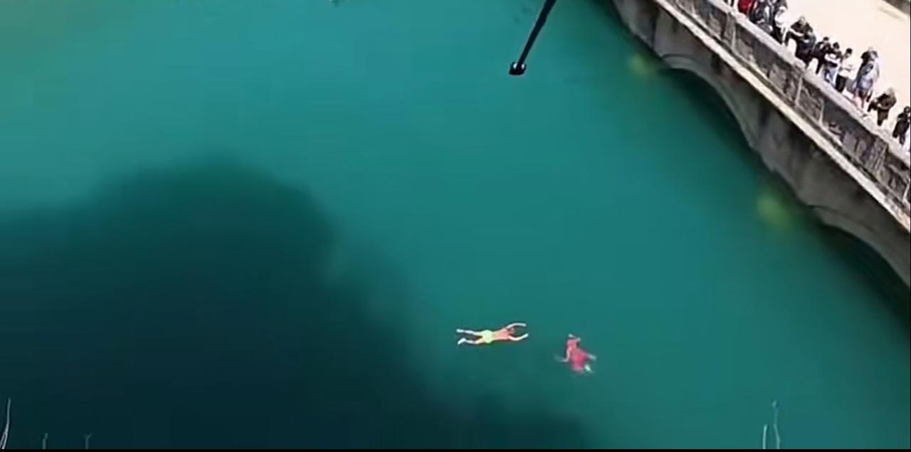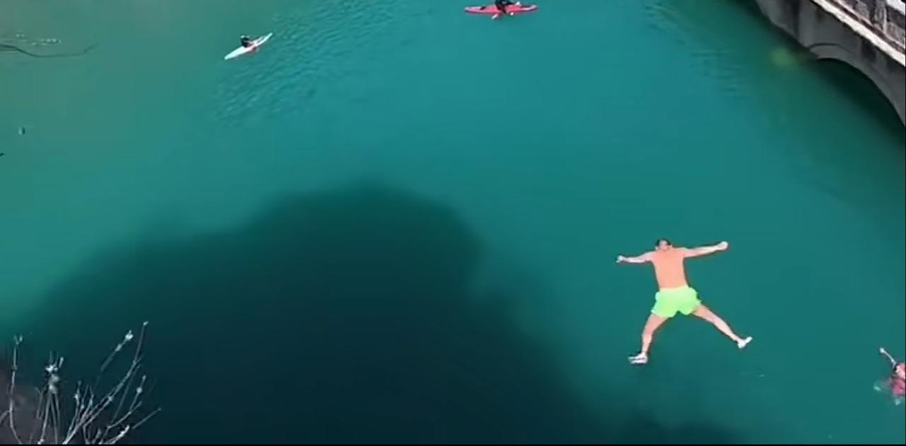 120多米,横着下去,蛋蛋都拍稀碎,估计人是不行了,除非跳冰棍,竖着下去,捂住蛋蛋,人没事,否则就是要命。