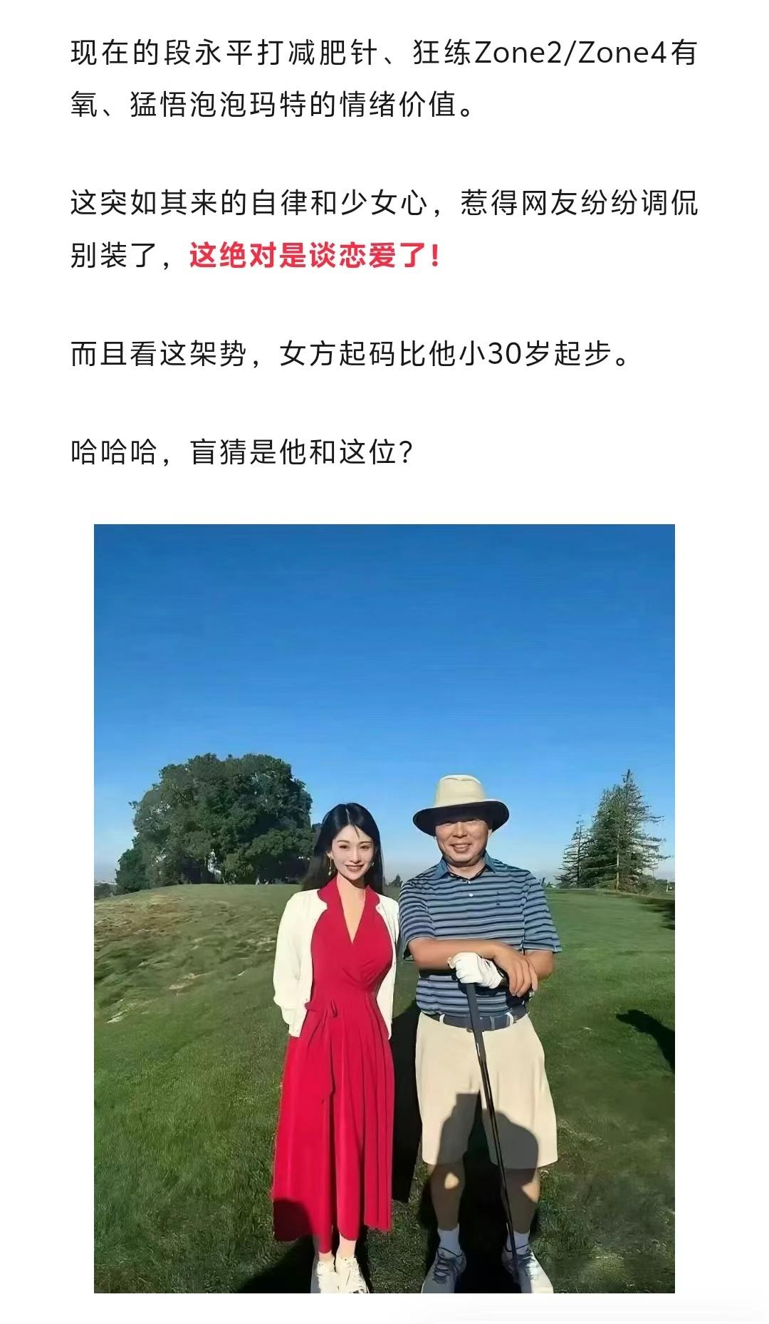 果然,当中年男人开始健身搞美容,不用说,他又恋爱了,段永平也不能例外。