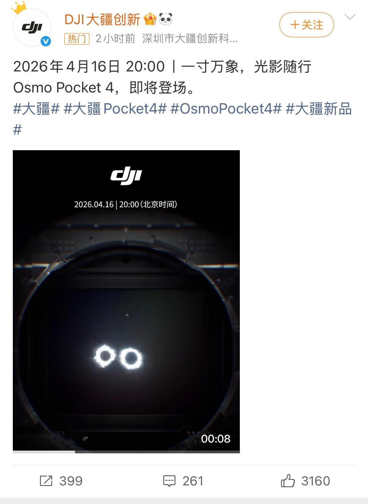 大疆Pocket4确定16号Pocket 4要发了!!!这玩意就是自媒体生产工具