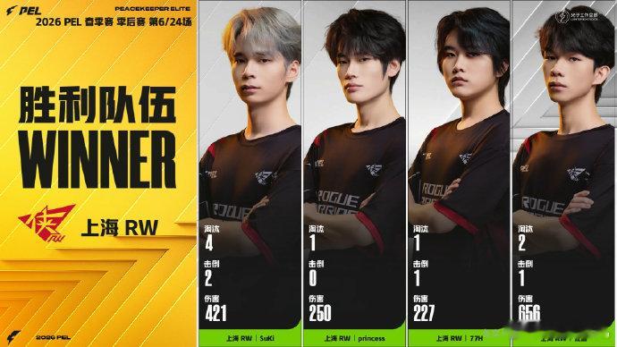 RW满编吃下一鸡RW季后赛首日两鸡 首日就拿下两鸡,RW这状态直接拉满,季后赛首秀就这么顶。
