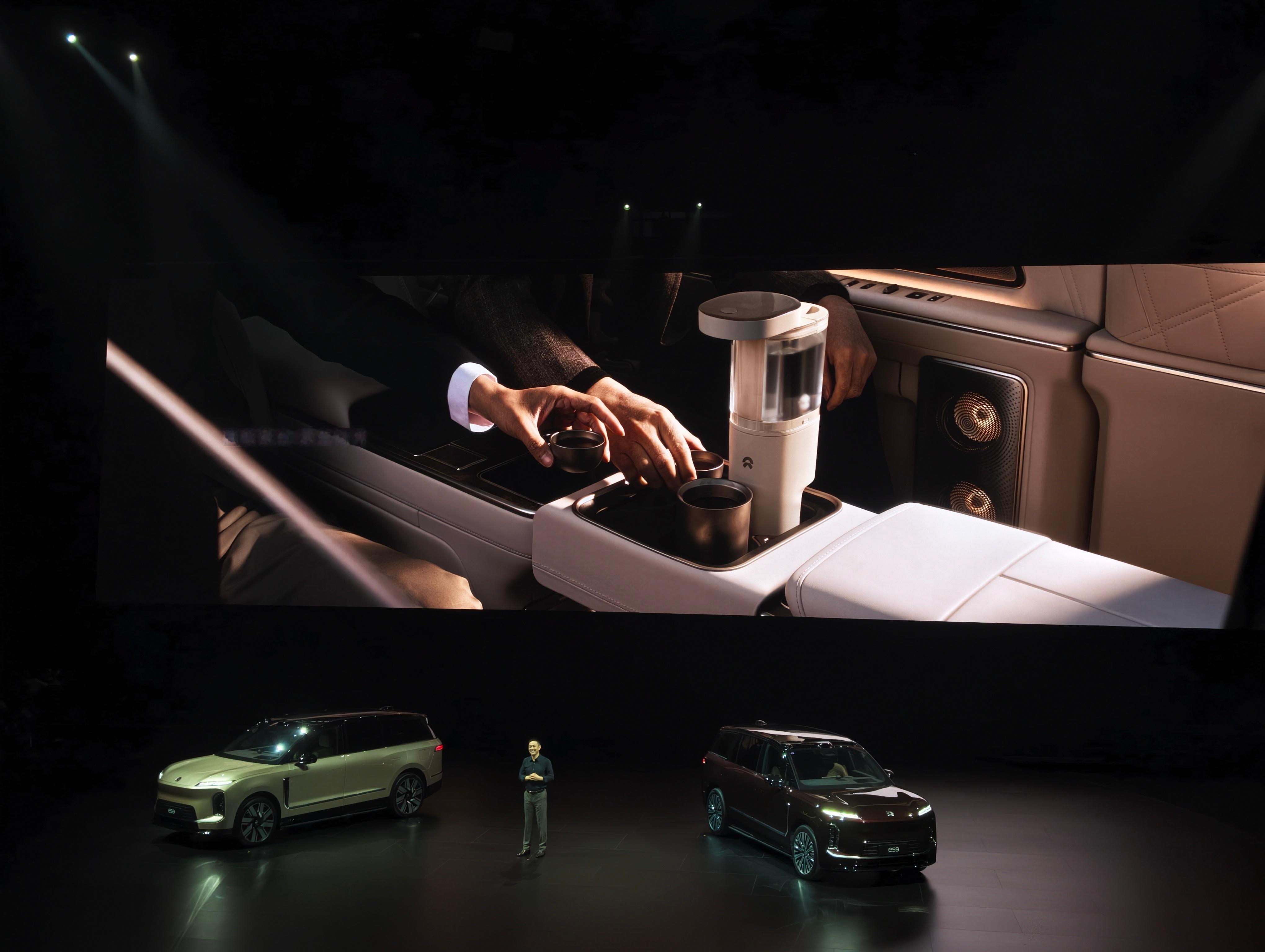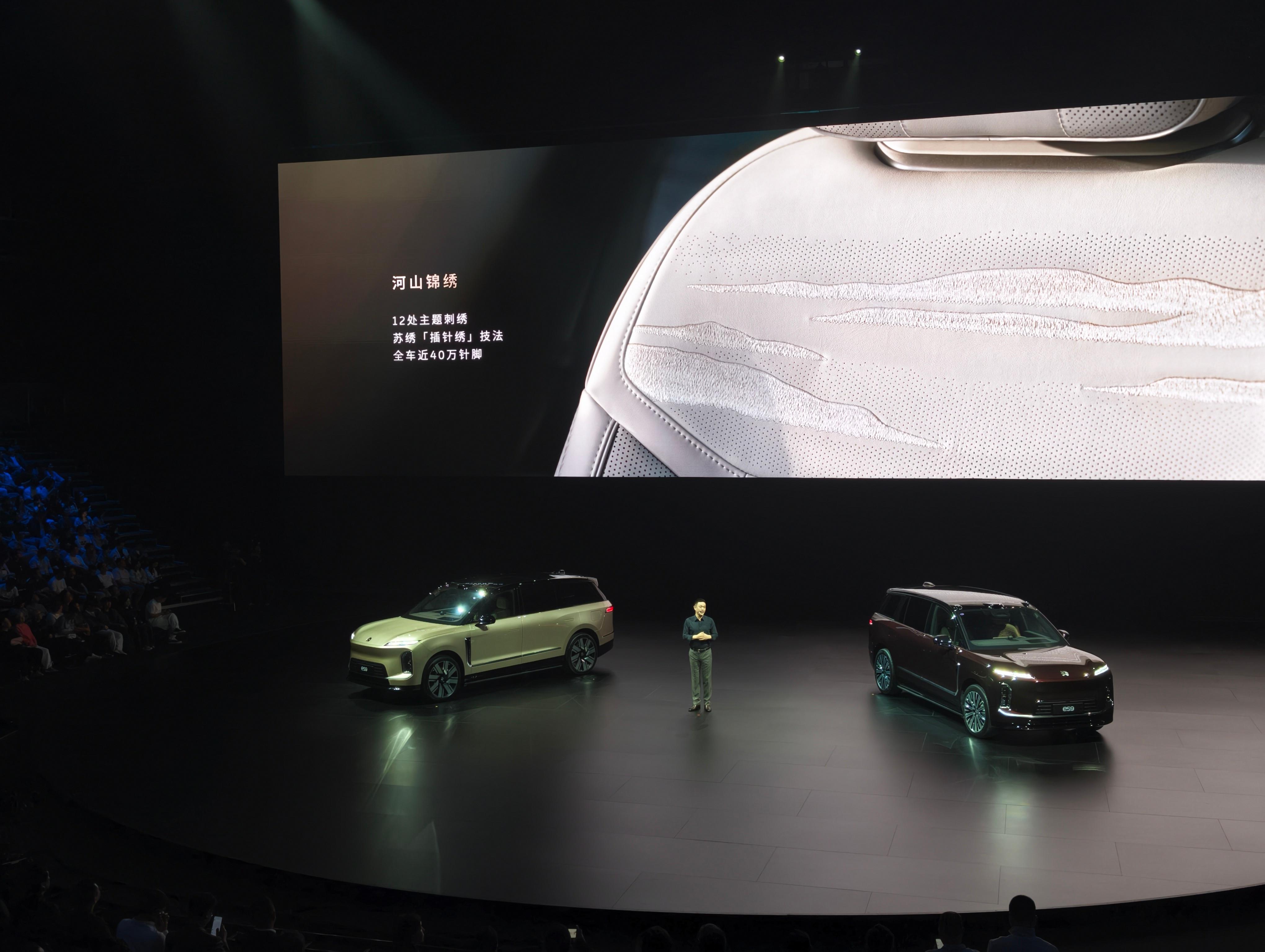 蔚来es9中国元素 把中式设计融入全车,山水刺绣、中轴对称、天地配色…甚至连茶台