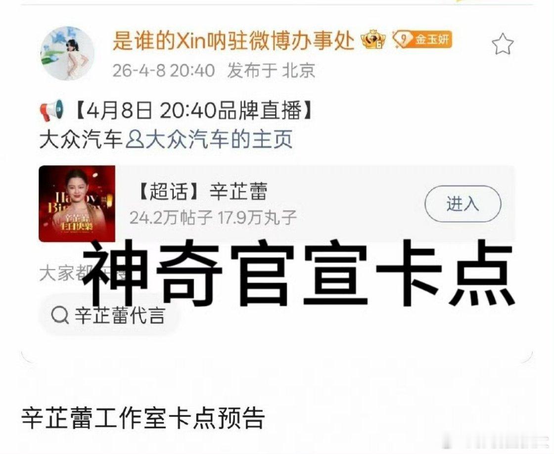 三个内娱神奇工作室最近那英辛芷蕾马丽的工作室被网友戏称为“内娱神奇宝贝三巨头”凭离谱操作火出圈。那英工作室用现代设备拍480p模糊视频被调侃“手搓匠人”;辛芷蕾工作室为避“4:80”选20:40发预告卡点玄学笑翻众人;马丽工作室头像截取随意、构图滑稽,每一个操作都精准踩中网友笑点