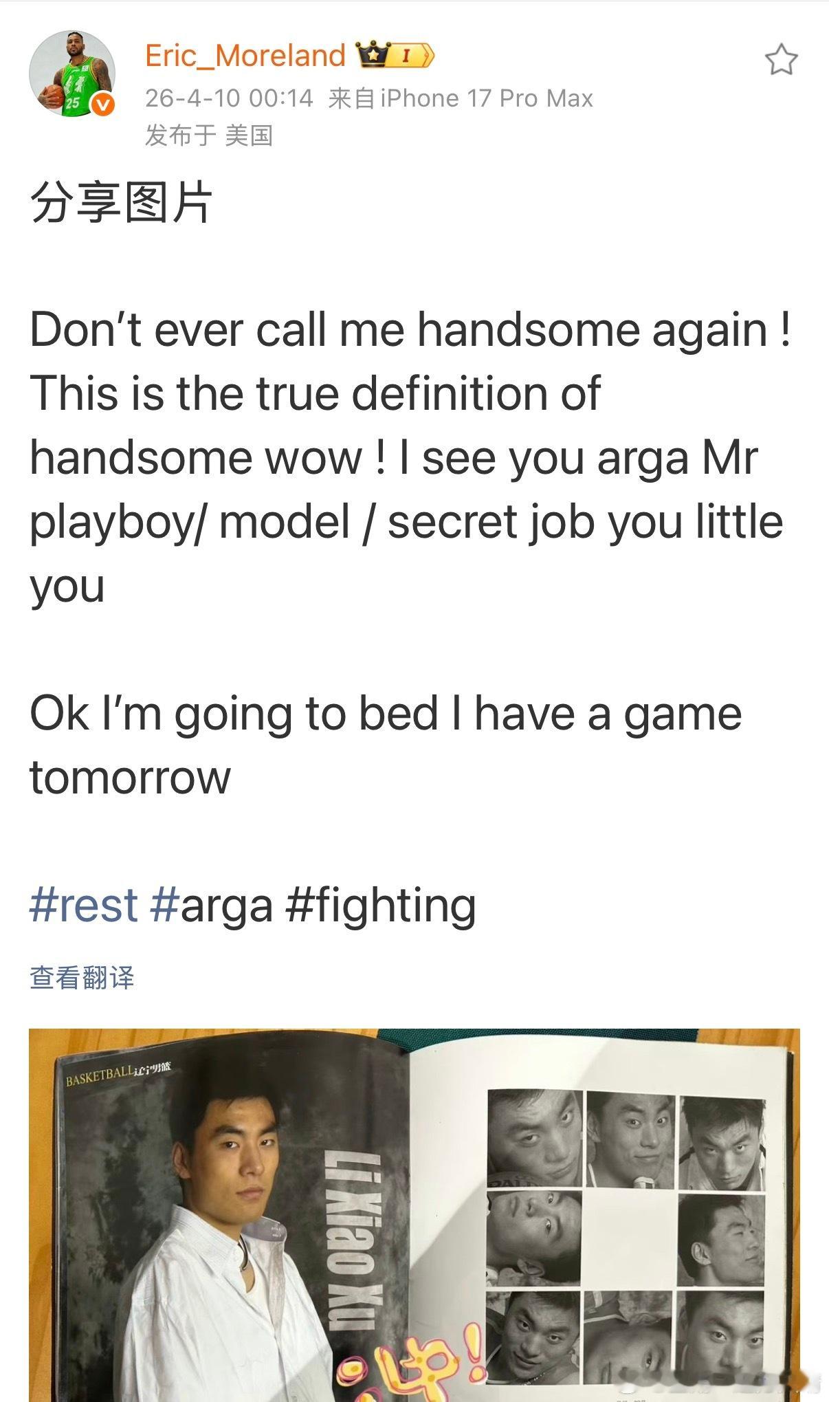 辽宁男篮莫兰德 大莫:“别再夸我帅了,二哥才是真的帅!二哥不愧是《花花公子》封面