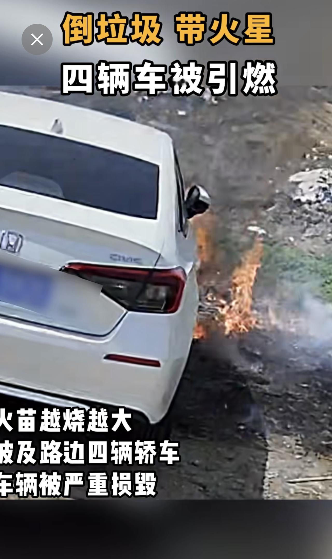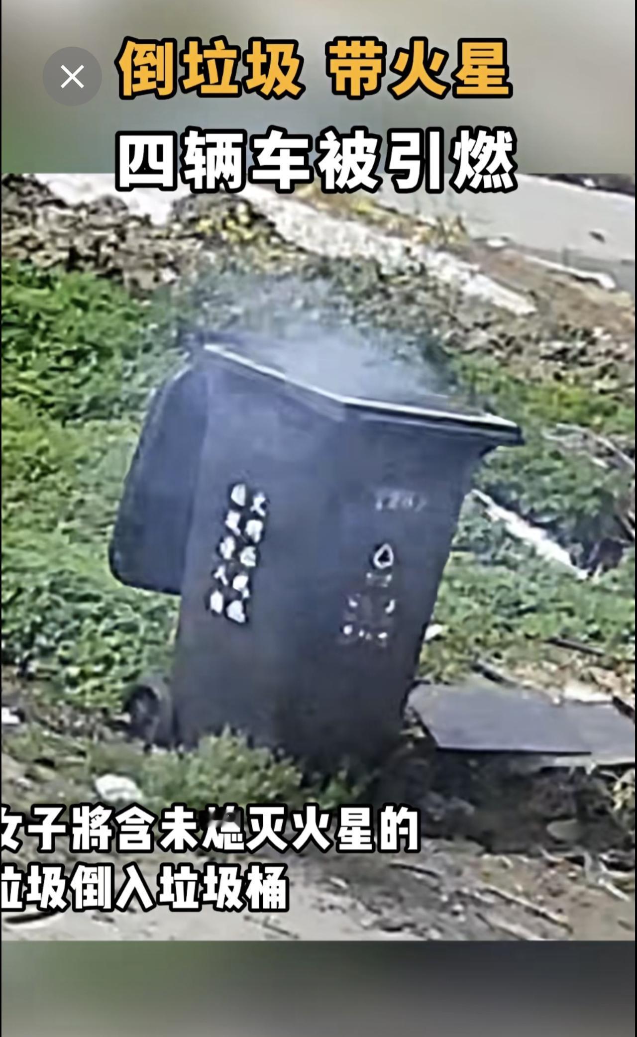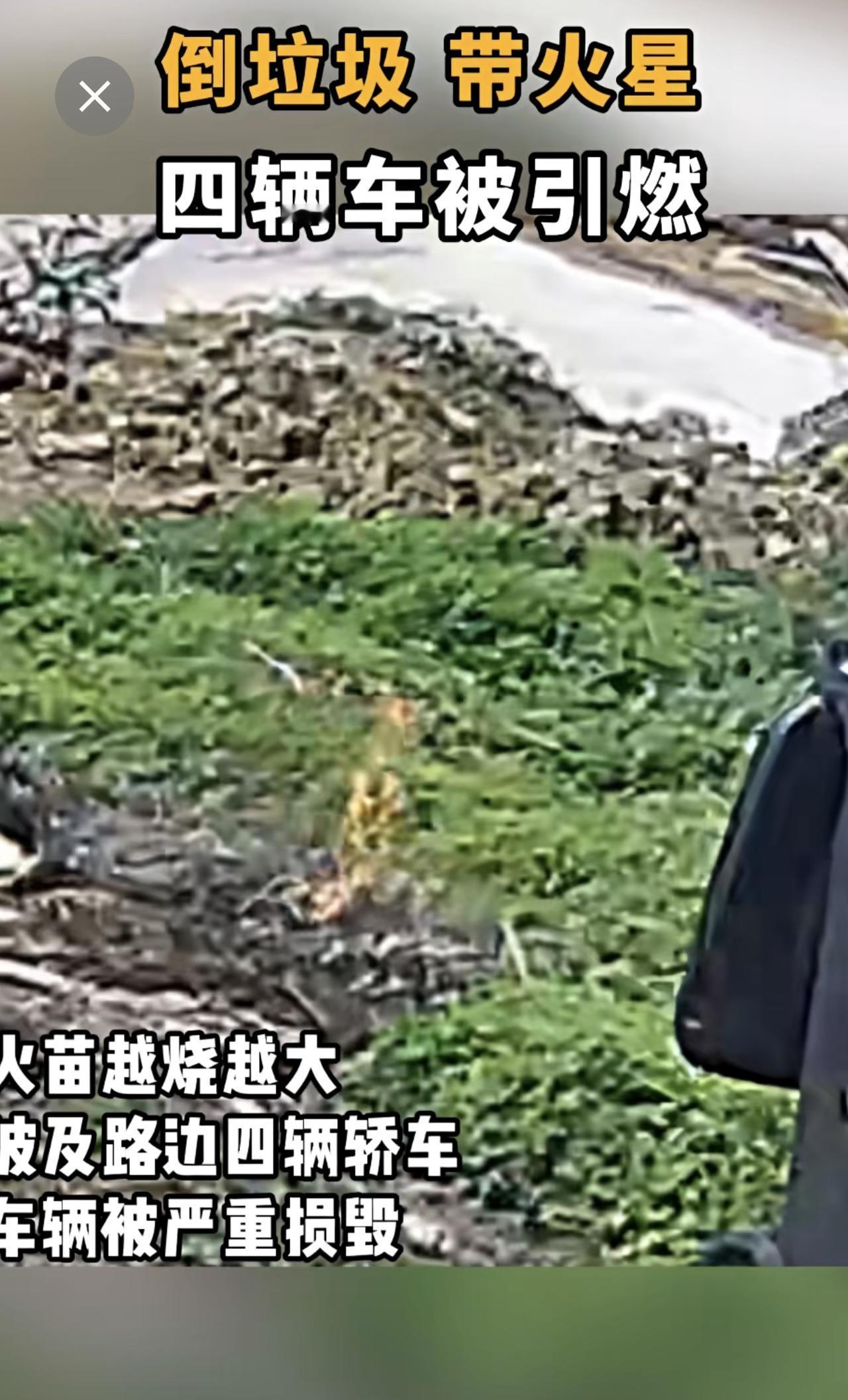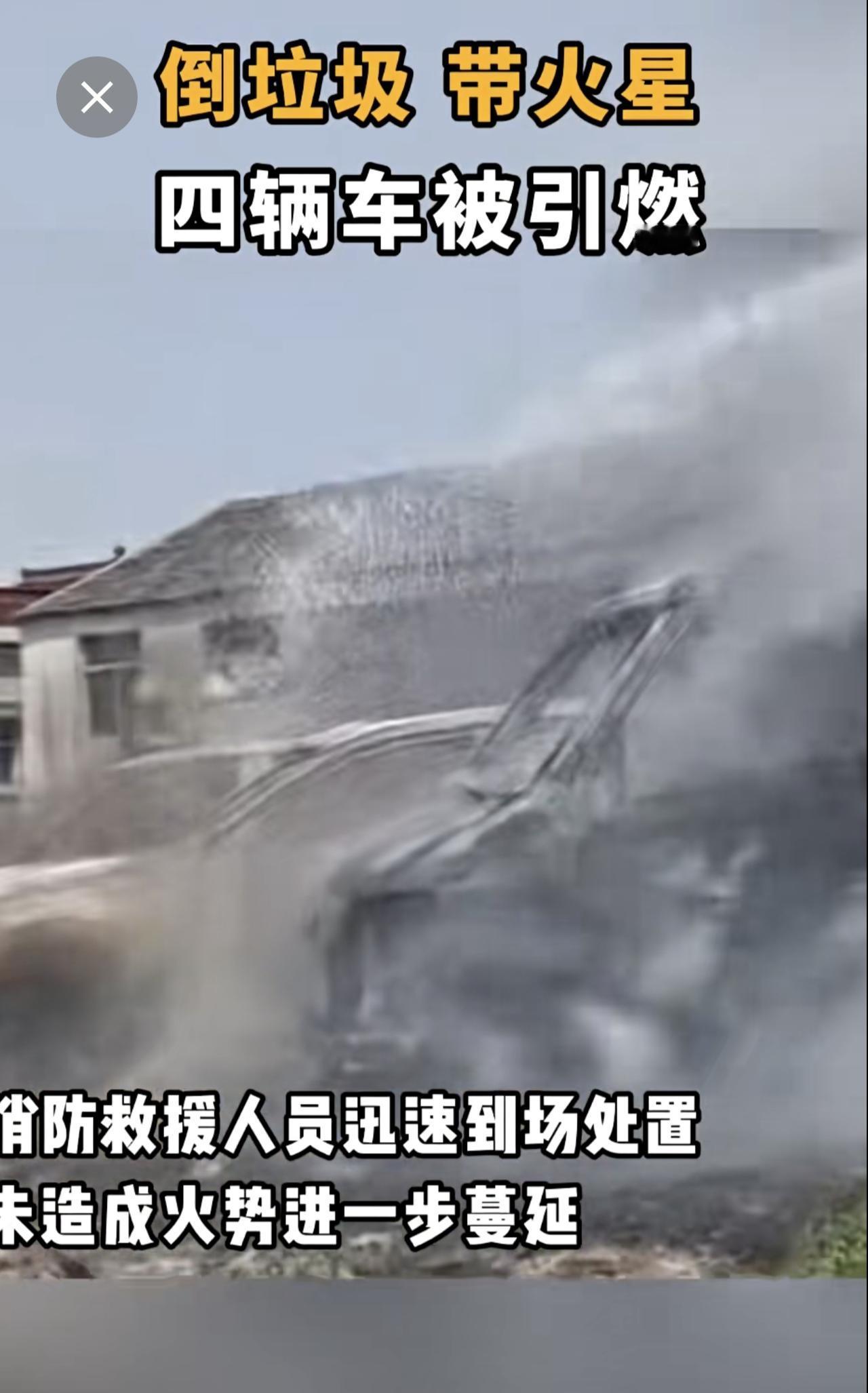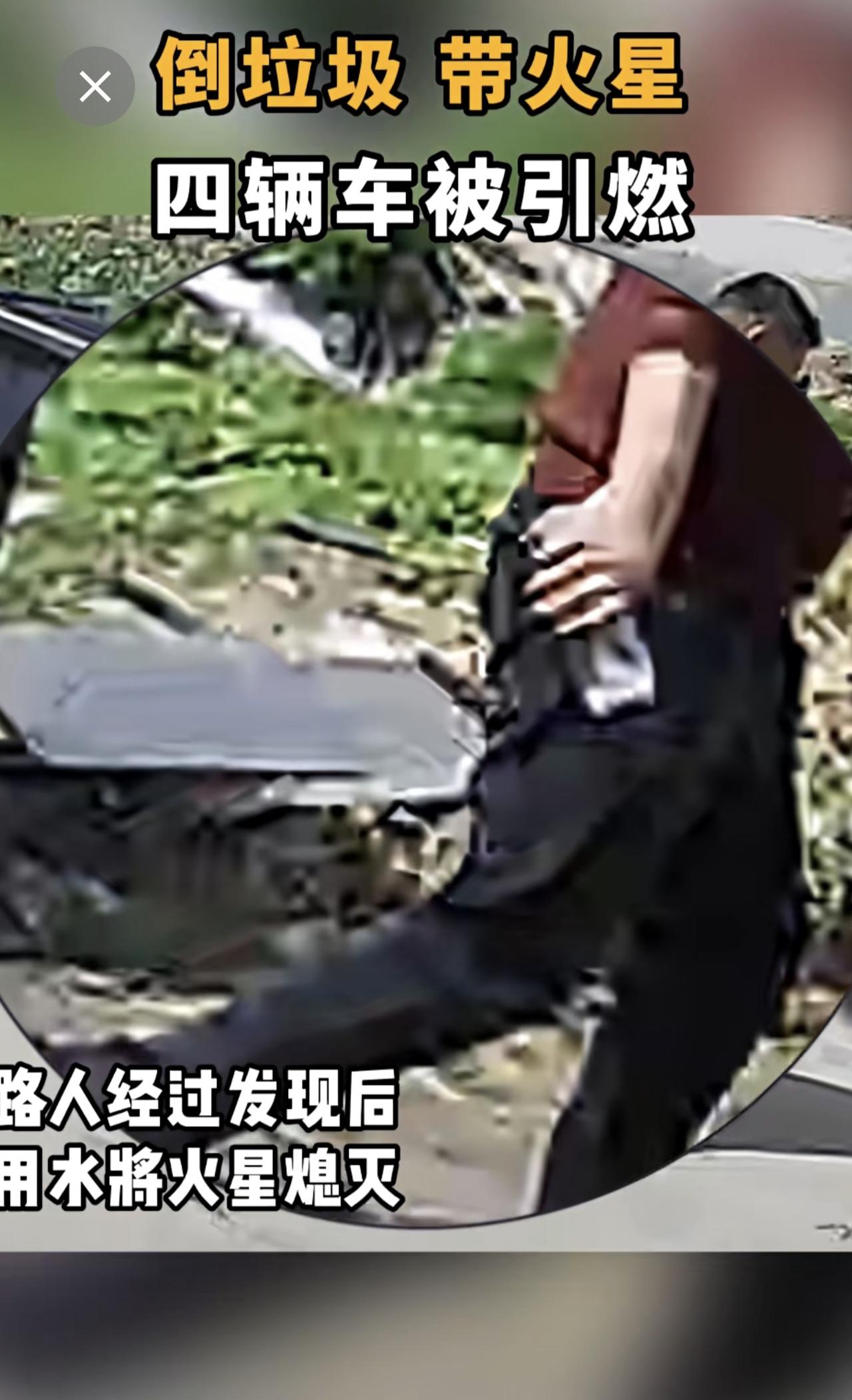 小火星引发大险情 未熄灭火星被风吹至旁边草坪 导致四辆汽车被引燃 #火灾 #消防 #消防救援 (作者:张亚辰)