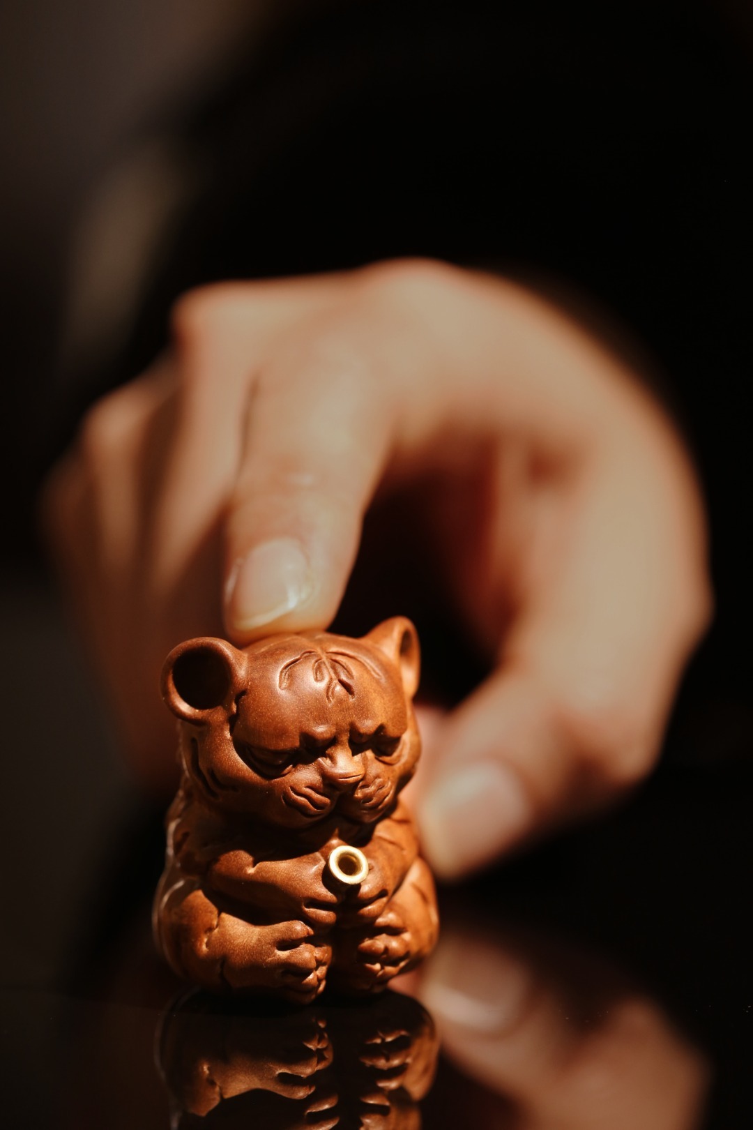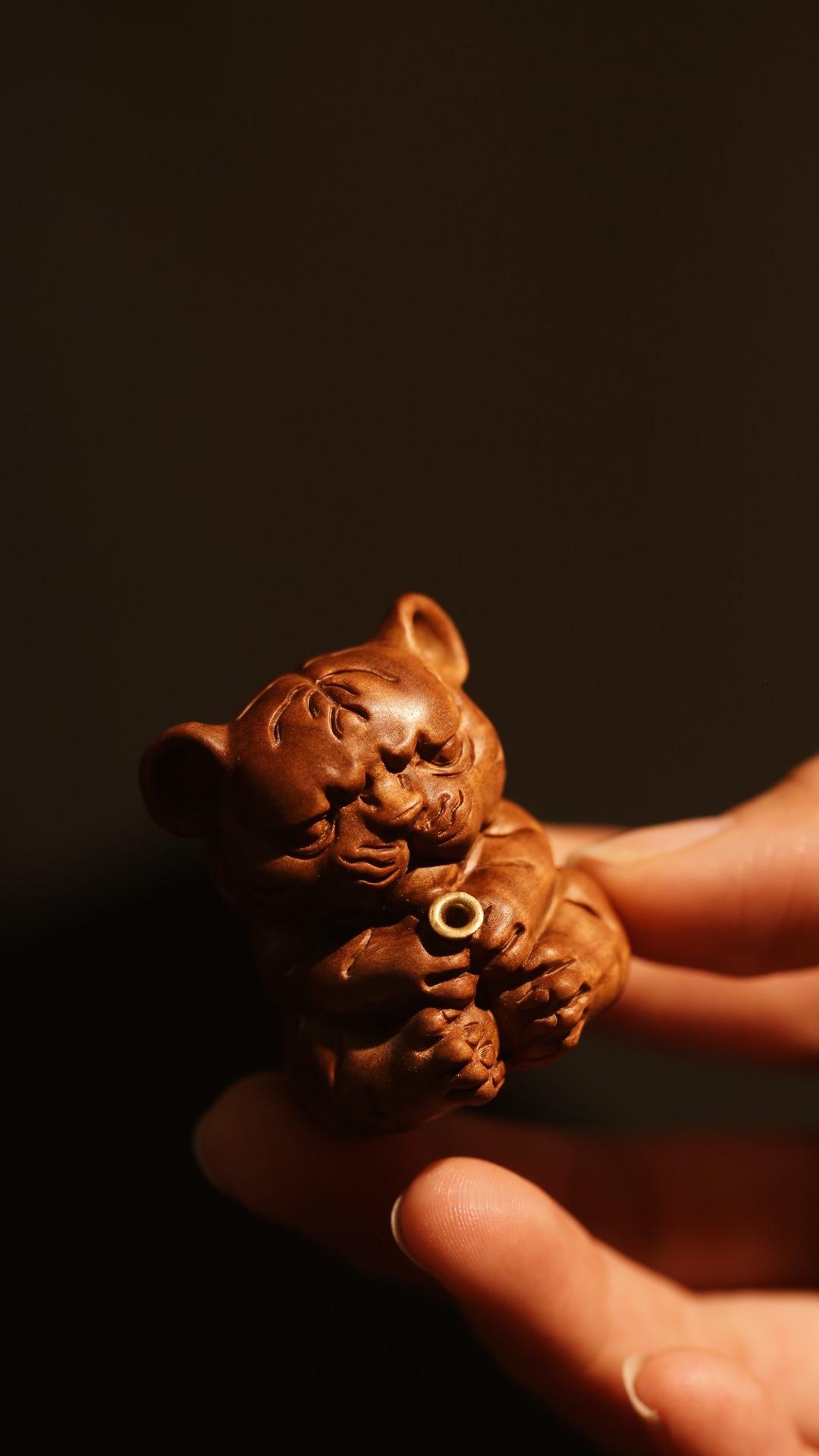 老山檀香【萌虎】香插会钓鱼的小老虎,萌翻你的茶桌。40*31*45mm 老山檀香