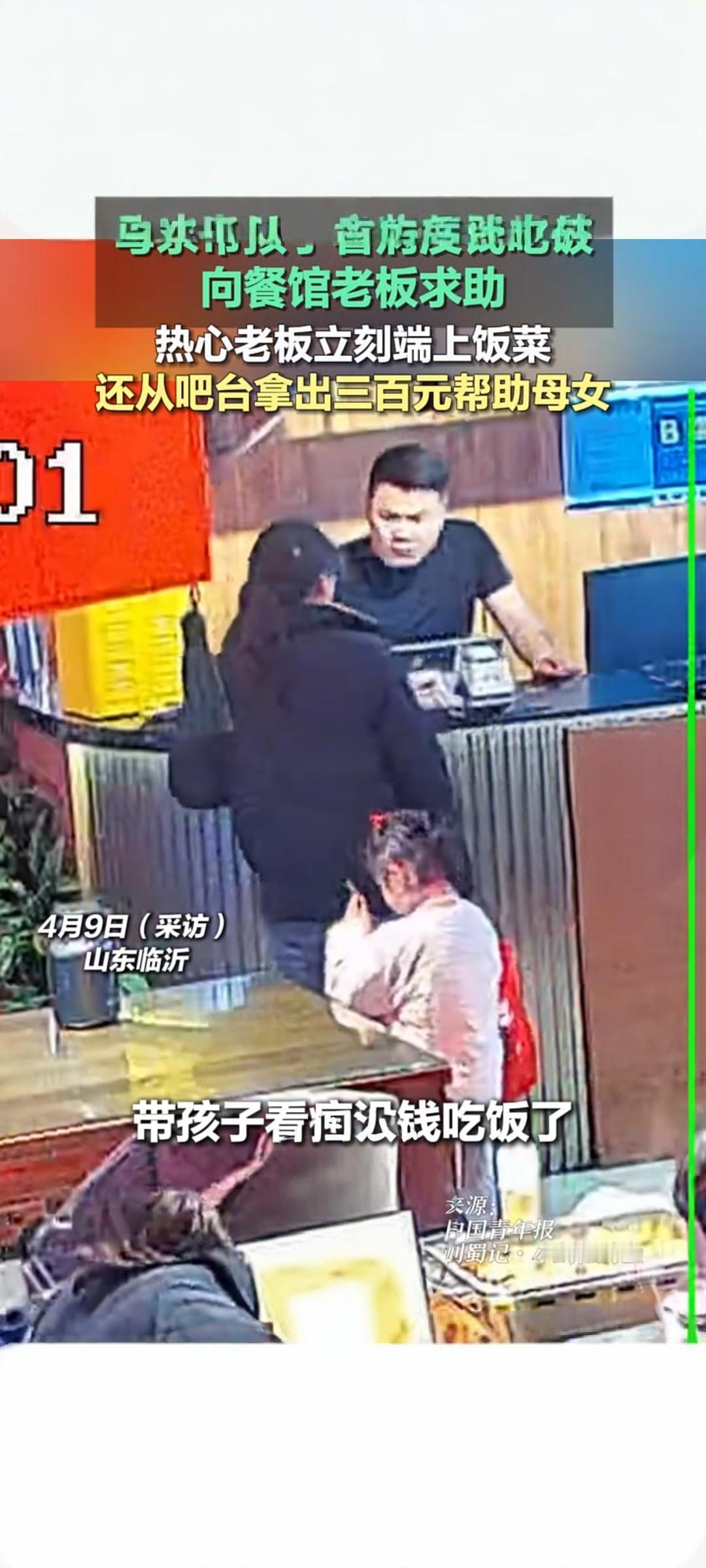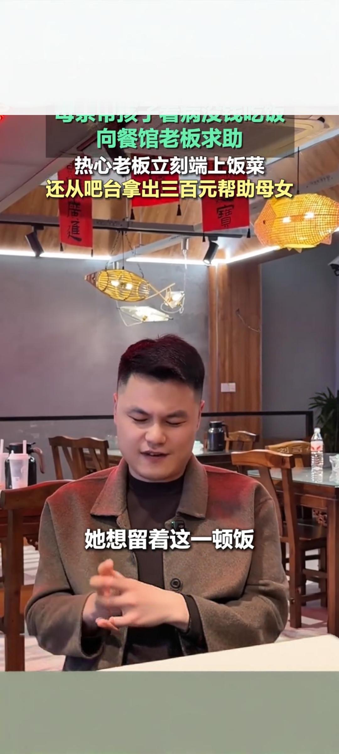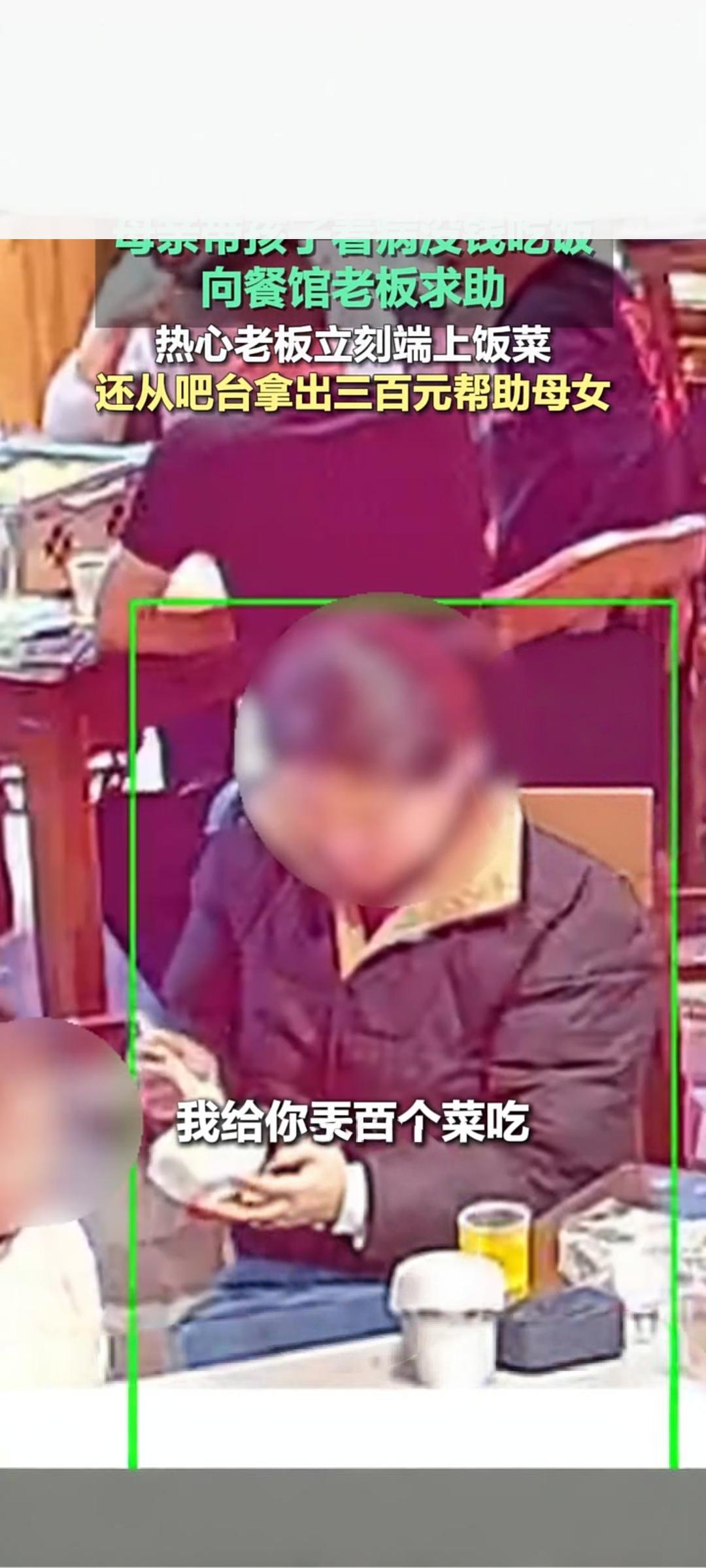 暖心!母亲带娃看病没钱吃饭 餐馆老板赠热饭又送三百元