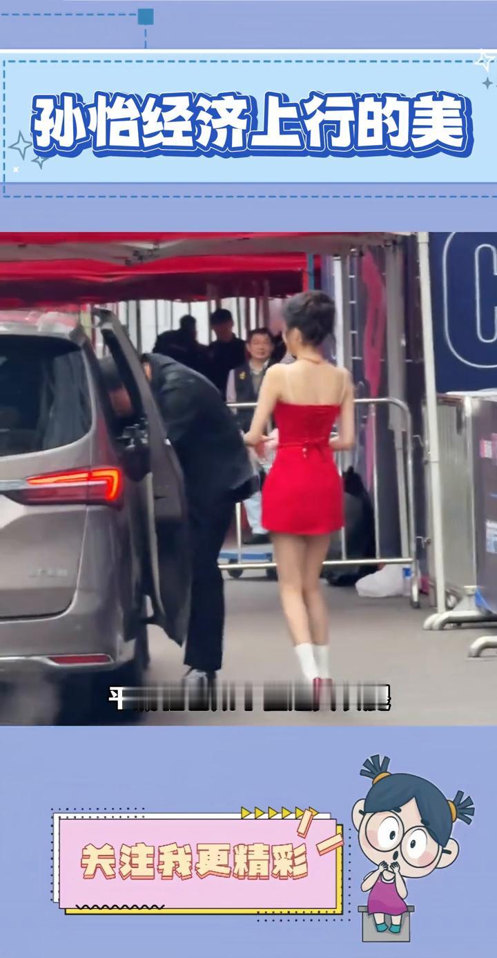 孙怡经济上行的美。 至今没发现个子高有什么坏处,一米七二的孙怡一出场就自带高光,一身小红裙元气又耀眼,满是经济上行的舒展底气。有着专业模特底子加持,平底鞋也藏不住逆天长腿,完全看不出已是当妈妈的人了,这要是成团绝对门面担当。