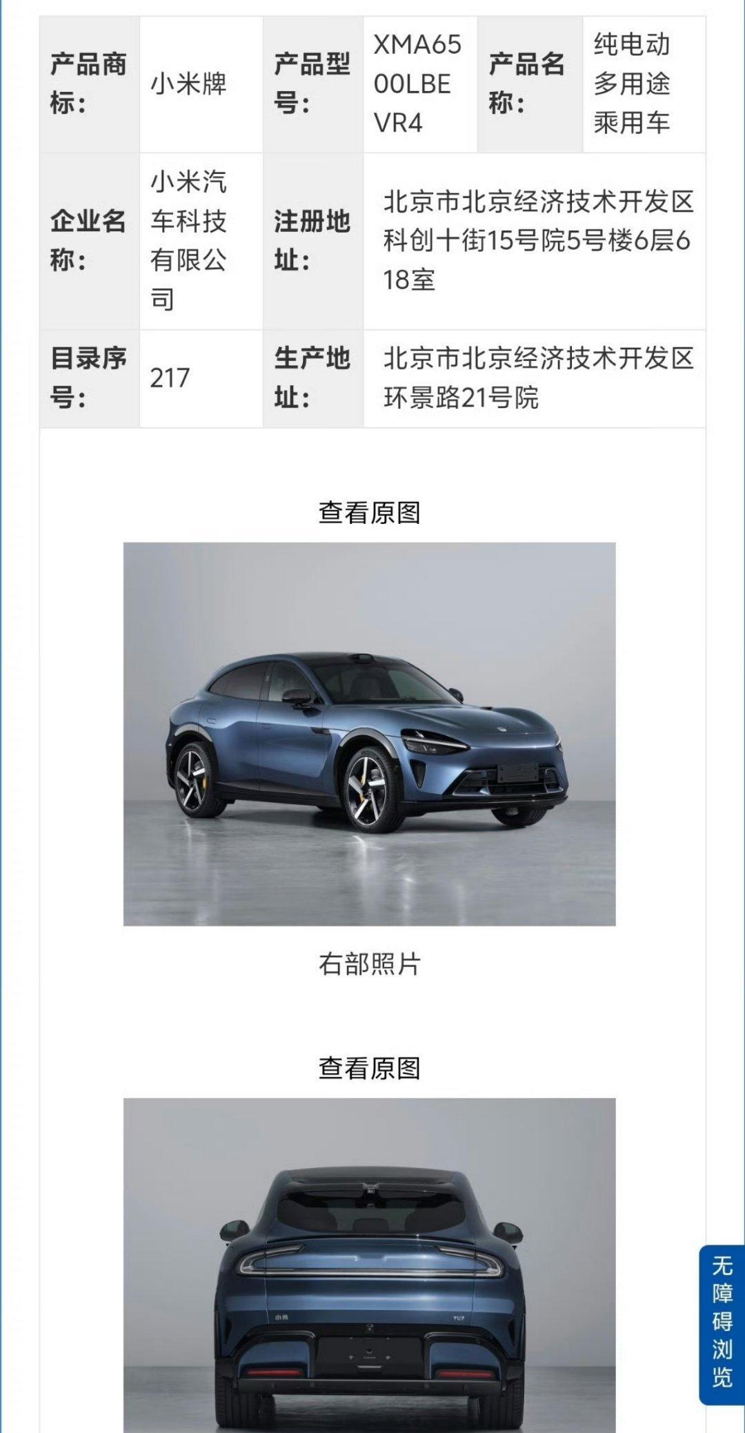 工信部最新车重磅型公示!当年雷军一度暂缓推出、无数车友心心念念的小米YU7标准续航版,终于正式亮相备案!从公示核心数据来看,新款整备质量2650kg,对比现款96.3度长续航版本2765kg的重量,足足相差115kg。结合行业电池重量换算逻辑,这个差值刚好对应缩减约20度电池,和小米SU7全系产品梯度规划高度契合。更让人惊喜的是,公告实拍图清晰可见激光雷达全程标配,实打实做到只减电池容量、不减核心配置,诚意直接拉满。按照当下动力电池单度约500元的市场成本测算,20度电池差价对应整车降价一万以上,估计新车最终定价24万左右。当然车型登上工信部公告,仅代表通过技术审查、具备上市资质,更多属于品牌产品储备布局,具体上市时间仍以官方官宣为准。小米YU7入门级版本