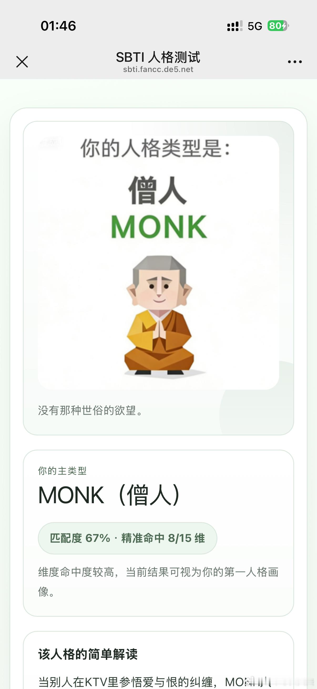 sbti人格大全网页链接 大家都来测测 我是僧人 佛系的还挺准哈哈哈哈