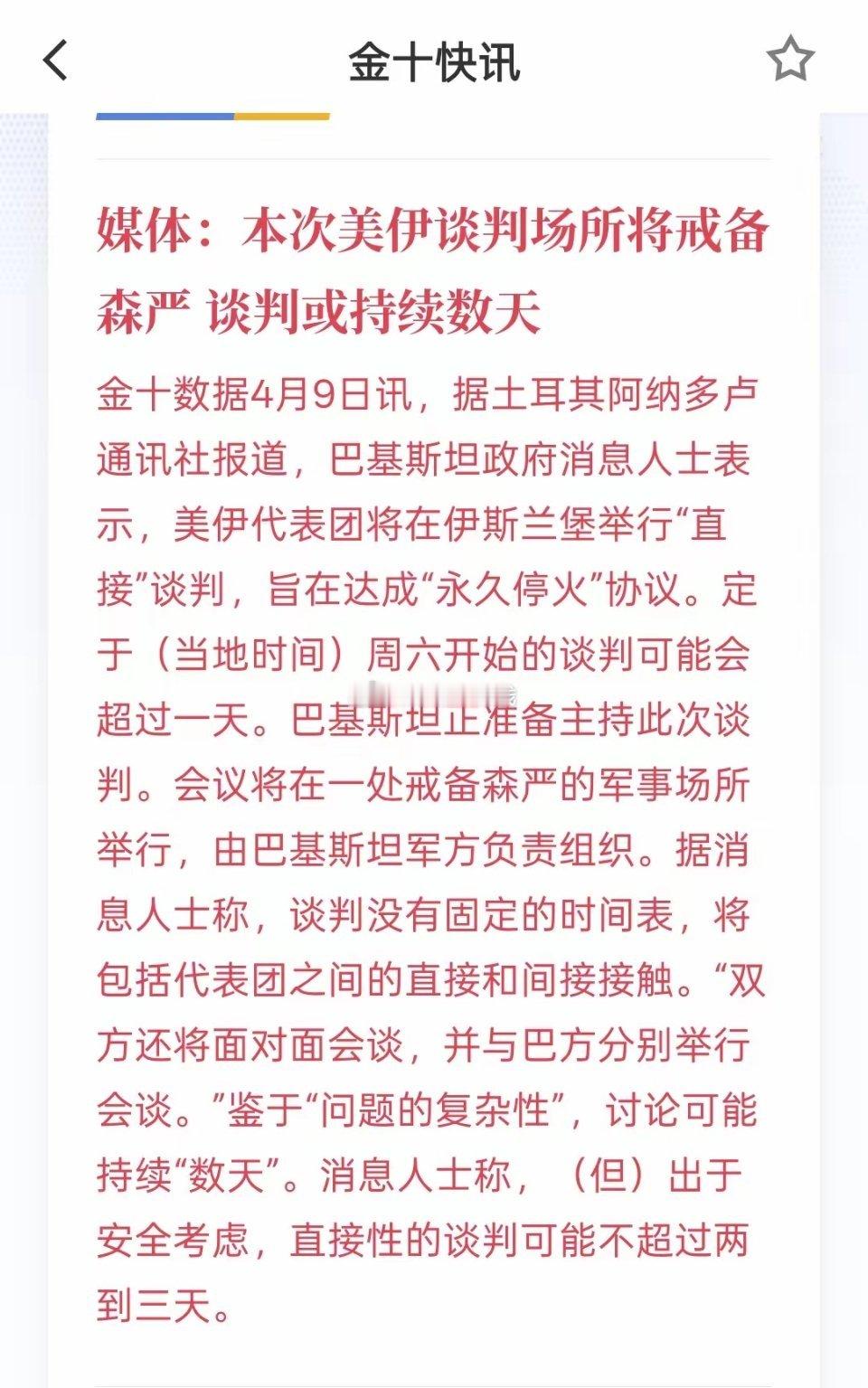 好消息,美国与伊朗已经开始尽快实行谈判,这一次谈判可能达数天,谈判戒备森严,主要
