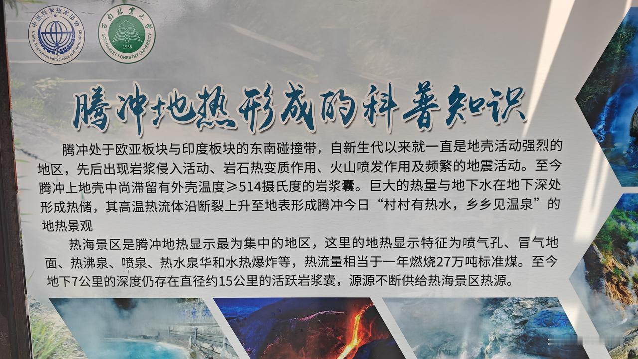 腾冲地处印度与欧亚大陆两个板块边缘,地壳运动活跃。特殊的构造,使得这一地区的地下断层岩浆活动很剧烈,从300多万年前至3000年多年前一直有火山喷发的情况发生,是世界罕见且最典型的火山地热并存区,是中国最年轻的火山区之一。